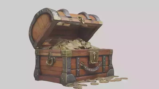 Treasure chest, pirate chest, fantasy treasure, wooden chest, locked chest, treasure box, old chest, ancient chest, pirate treasure, game prop, chest model, metal bands, brass lock, fantasy prop, ancient artifact.
