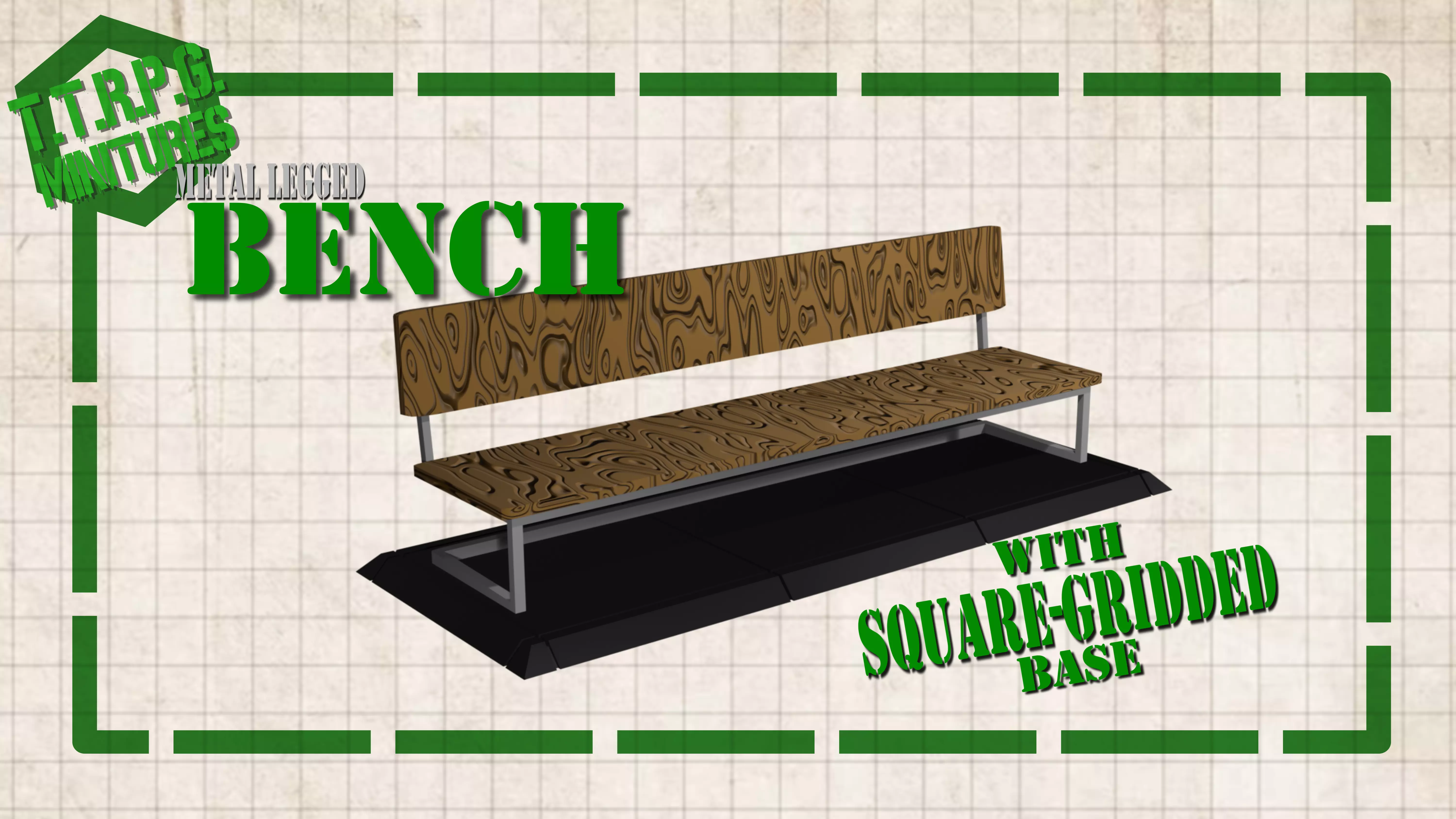 TTRPG and DnD Metal Leg Tavern Bench Miniature with Grided Base 3D model