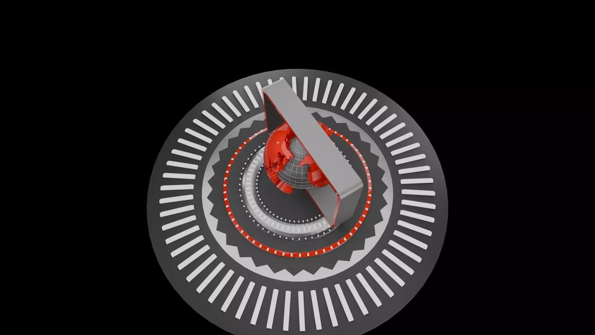 The Model shows the motion graphics of Title card for the news program for a Television channel.The Model is done in Blender and rendered in EEVEE.The model has a Monitor, Globe, Globe with Map, Platform with various design and the Letter NEWS.The animation follows the camera movement which starts from the top of the models and move across the model and then moves towards the model. at the same time the letter NEWS emerges from inside the golbe. The Globe keeps on rotating.
