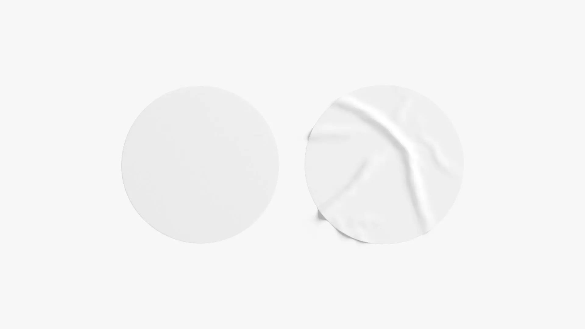 Two White Round Stickers - flat and crumpled adhesive label Low-poly 3D model