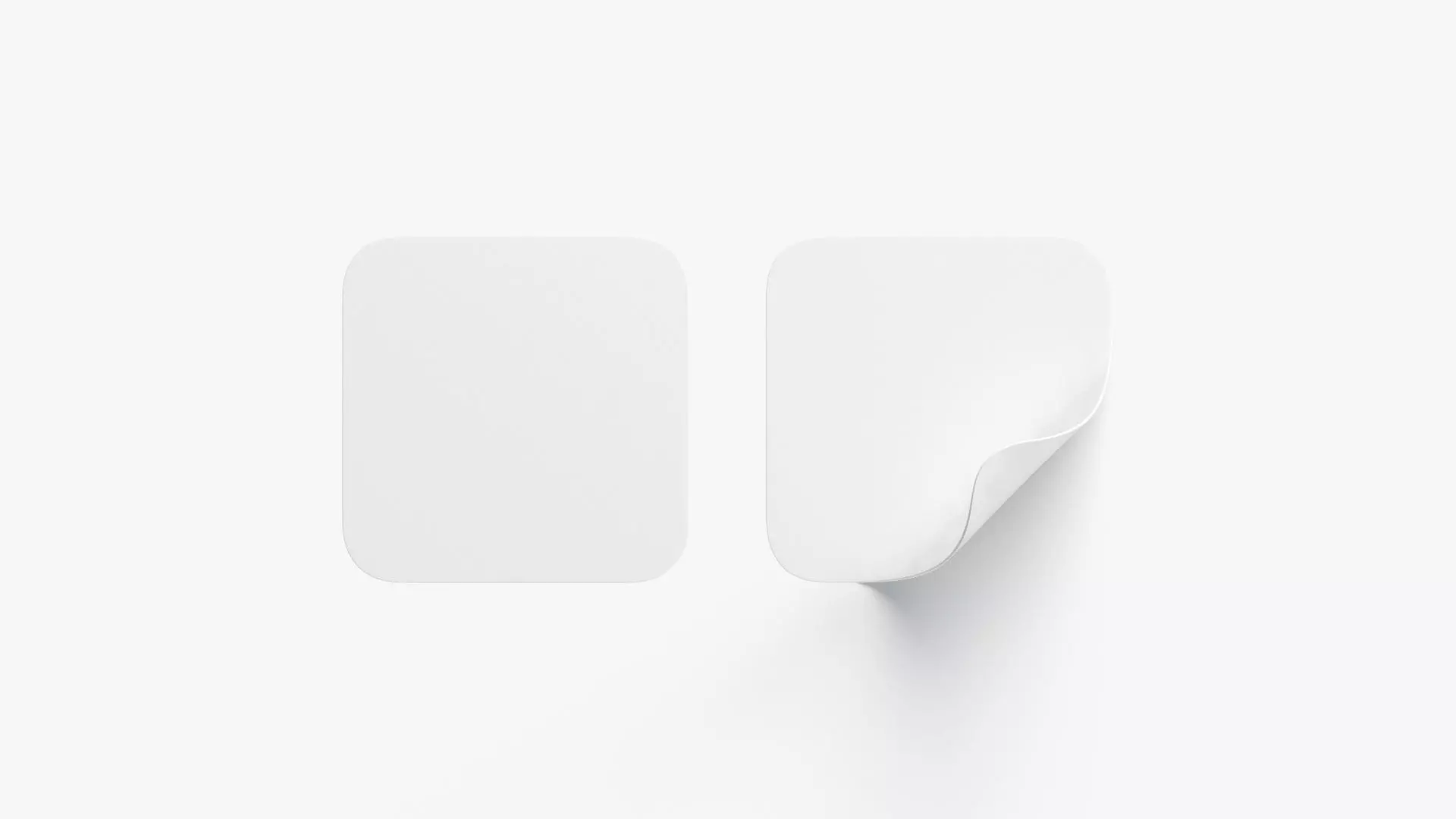Two White Square Stickers - smooth curled corners adhesive label Low-poly 3D model