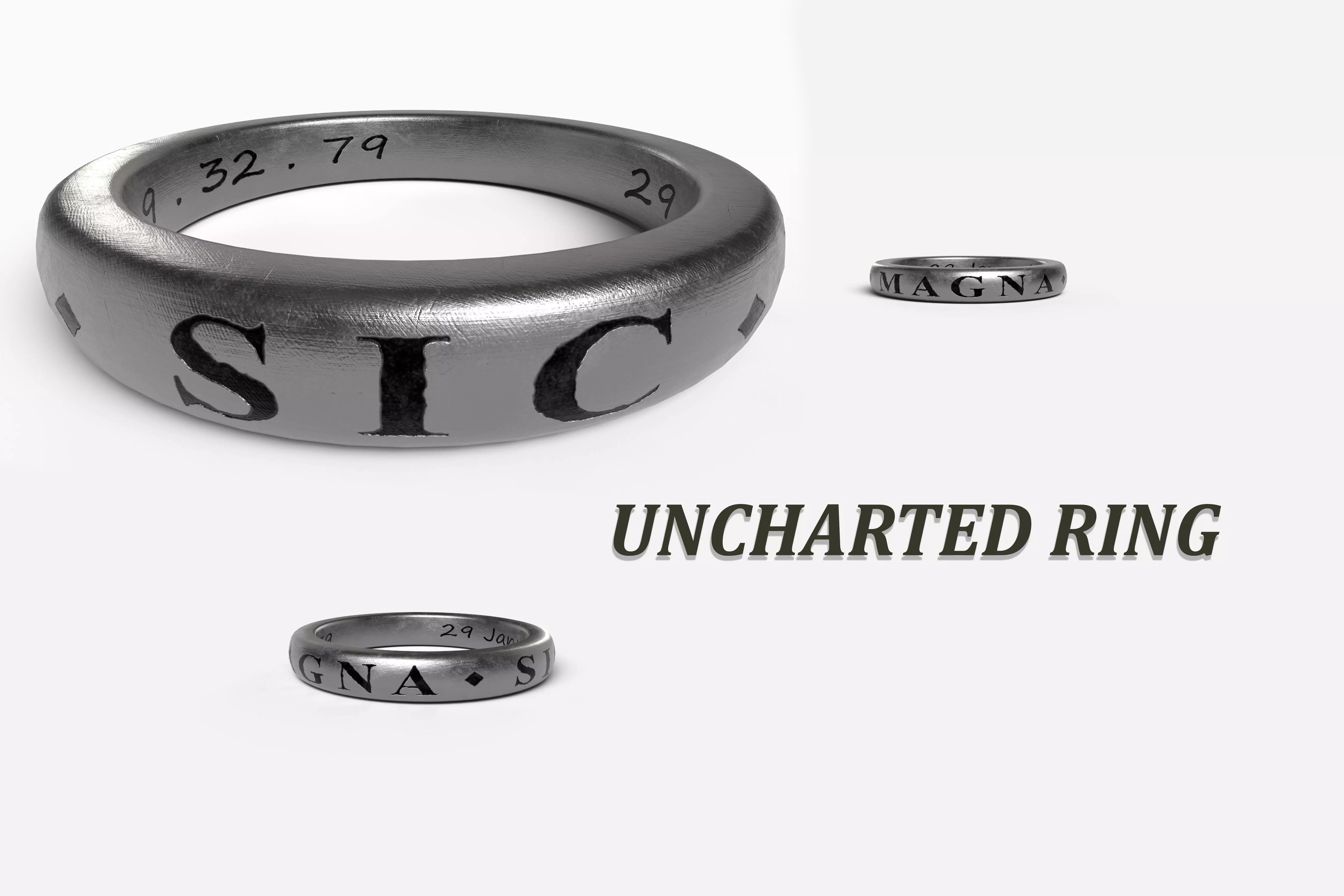 High poly Uncharted Drake Sic Parvis Magna ring.