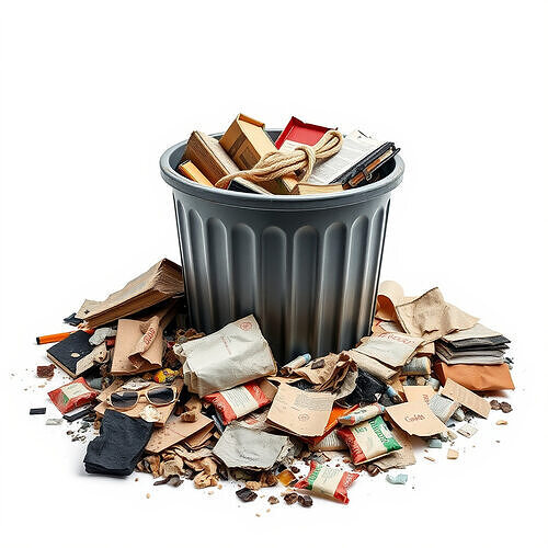 This urban trash debris collection model is perfect for creating realistic street scenes, post-apocalyptic environments, or educational content about waste management. It includes a variety of elements such as charred book spines, crumpled tetra packs, frayed rope, fractured spectacles, torn pizza boxes, and discarded snack wrappers.