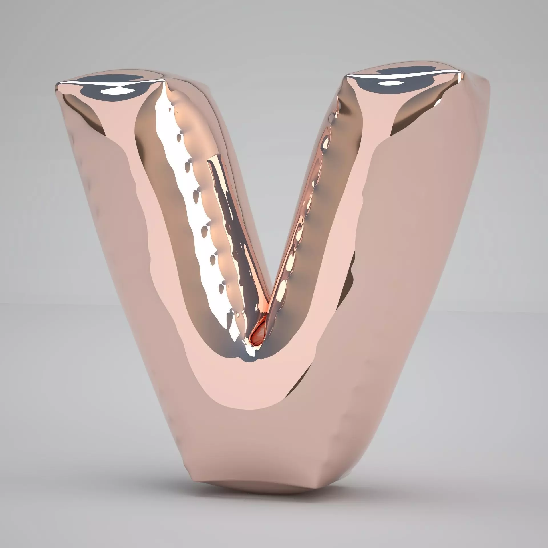 Realistic 3D Model OF Balloon V Alphabet Copper