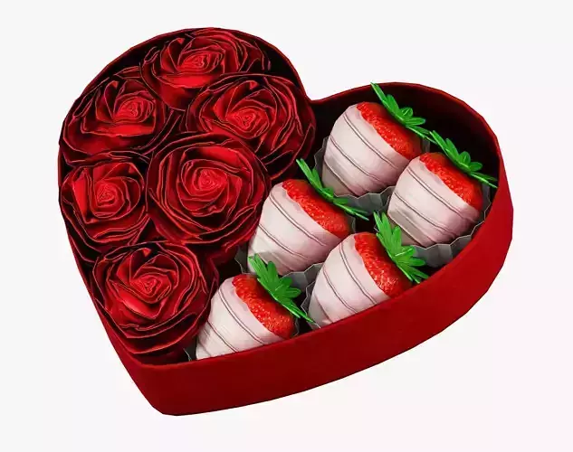 Valentines Heart Gift Box with Roses and Strawberry Candy Low-poly 3D model