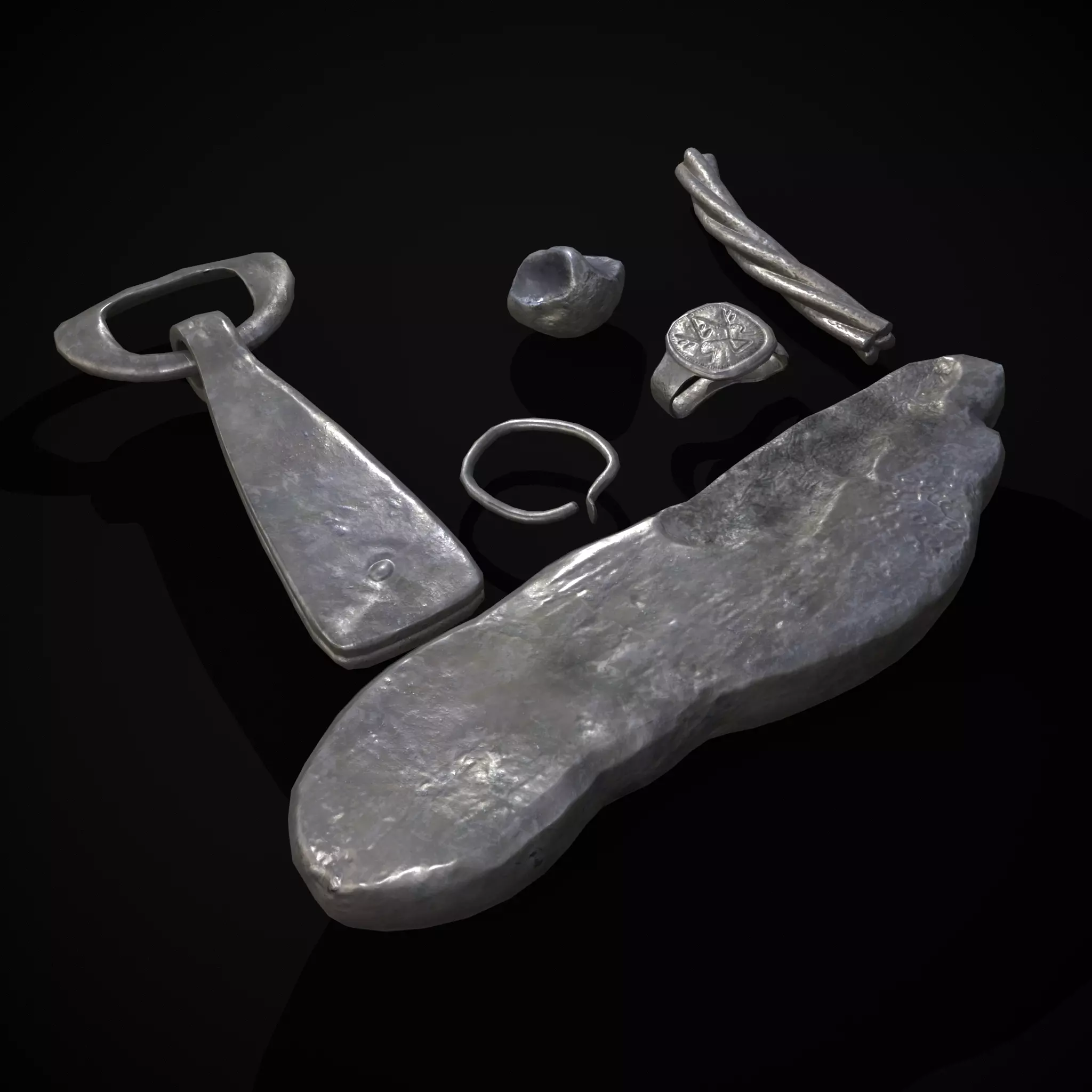 Viking Silver Treasure 3D Model Files Include FBX and OBJ. Includes PBR Texture in 4096 x 4096. - Maps include : Basecolor, Normal, Roughness, Height and Metallic. All Preview renders were done Marmoset Toolbag 4. Scaled to real world scale. Customer Service Guaranteed. From the Creators at Get Dead Entertainment. Please like and Rate! Follow us on FaceBook and Instagram to keep updated on all our newest models. Model can be used for any purpose except resale or redistribution of the asset if not used in a game, commercial or media project.