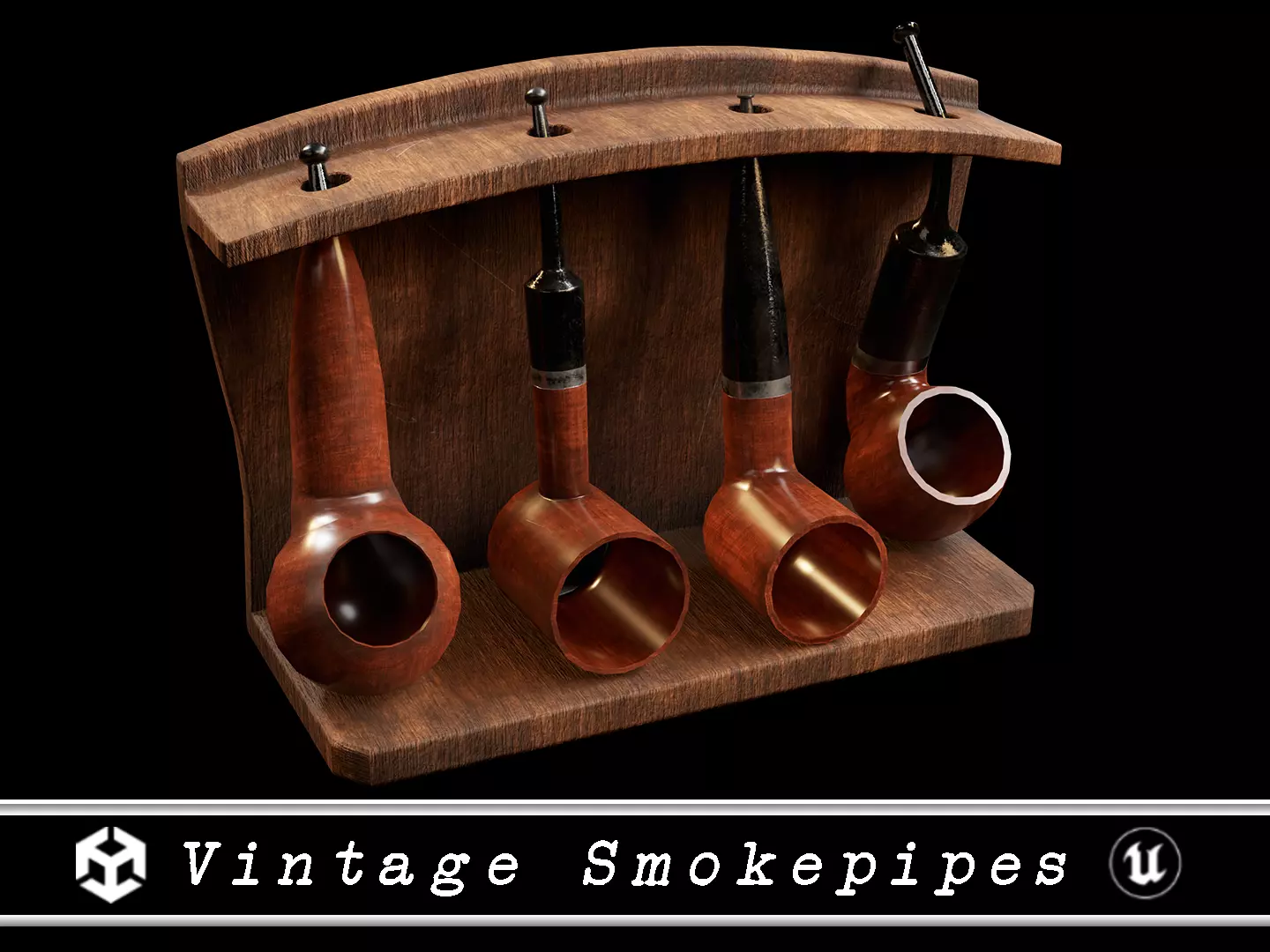 Vintage Smokepipes 3D Model. This model contains the Vintage Smokepipes itself