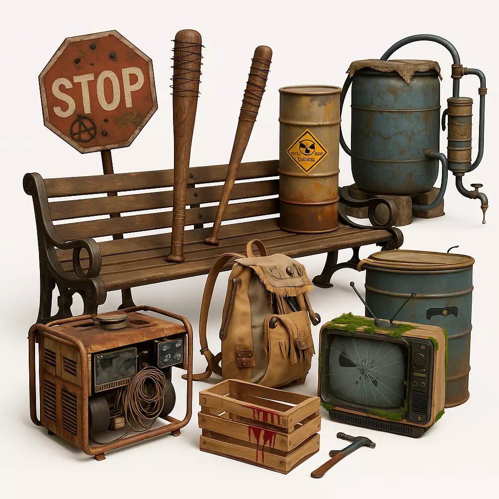 Wasteland Props Vol. 01 is a collection of 9 high-quality, stylized post-apocalyptic 3D assets designed for environment building in survival, horror, or sci-fi games. Each model has been carefully crafted with rich texture detail, emphasizing wear, decay, and environmental storytelling.