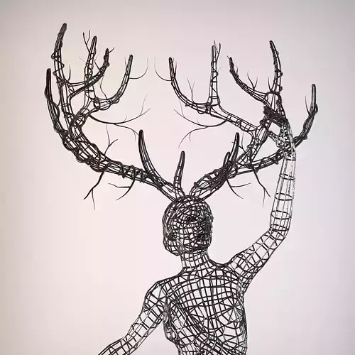Unique sculpture of a dancing woman with stag horns made from wire. You can adjust the wire thickness in MAX via modifier. The scene with lights and cameras are also included. Uploaded older version of MAX 2012 and other formats: 3DS, OBJ, FBX.