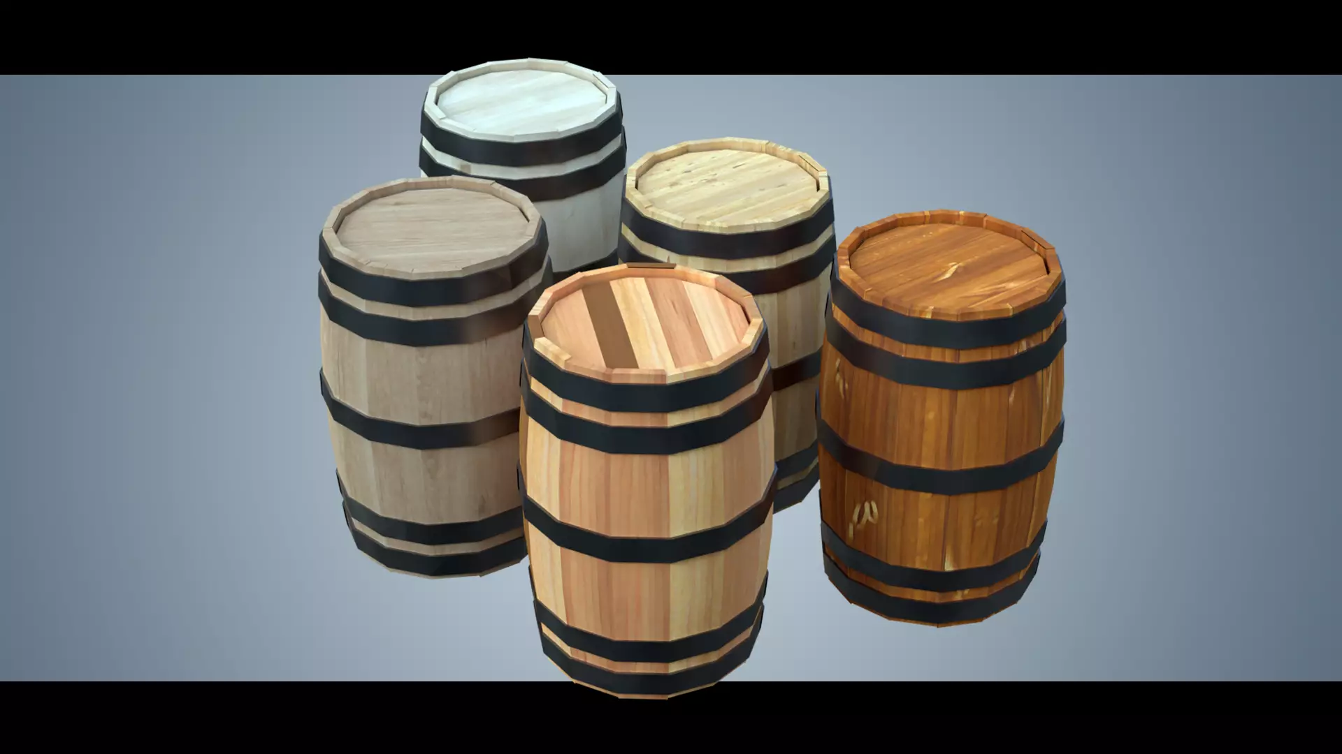 Wooden Barrels model created in Blender 2.9. Proportions are slightly stylized, same as textures. There are 5 different diffuse wood textures PNG files.
