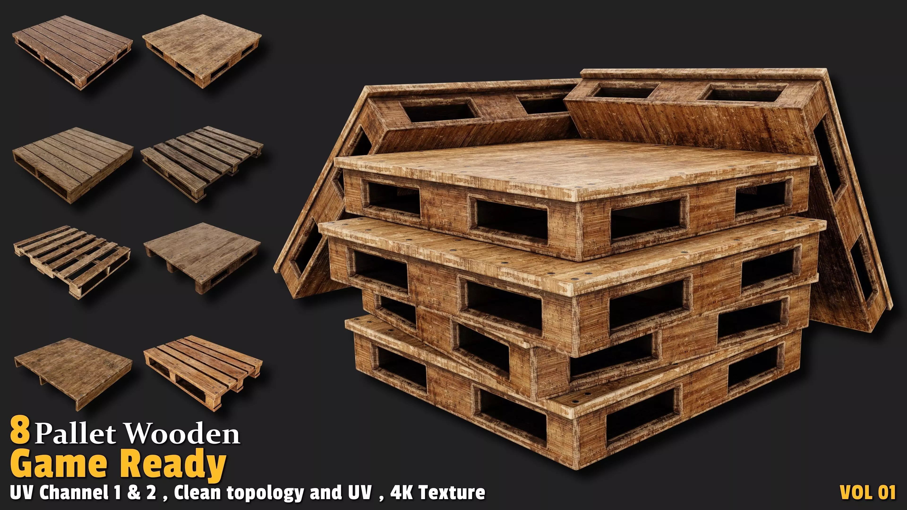 Game Development: Ideal for warehouses, industrial areas, or logistics scenes in simulation, survival, or adventure games. Pallets can serve as obstacles, platforms, or environmental elements in shooter or open-world games.Real-Time Rendering: Perfect for game environments requiring realistic details like warehouses or shipping scenes.Environment Design: Great for creating fantasy or industrial spaces with customizable, textured pallets. Easily import and use.