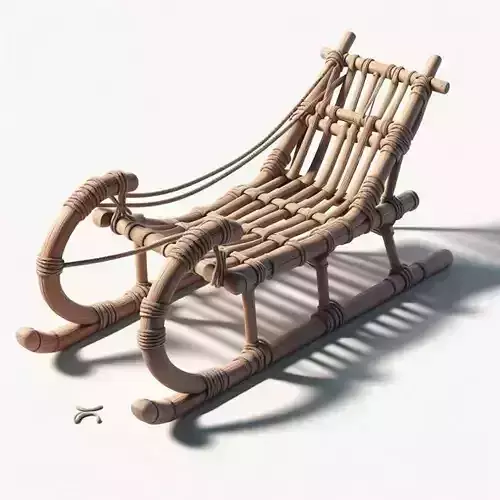 Download the charming 3D model of a woven wood sled, a digital recreation of a handcrafted, rustic winter transport designed to evoke nostalgia, craftsmanship, and seasonal joy. This wood sled 3D model features a sturdy frame constructed from smooth, light-brown wooden slats — meticulously bound together with thick, natural-fiber rope that weaves through the structure in intricate patterns. The seat is formed by parallel slats laced tightly with rope for comfort and durability, while the curved runners are reinforced with additional rope wrappings at key stress points. The front of the sled displays elegant, upward-curving handles — also wrapped in rope — enhancing both function and aesthetic appeal. The entire piece rests on a clean white surface, casting soft shadows that emphasize its sculptural form and tactile quality.