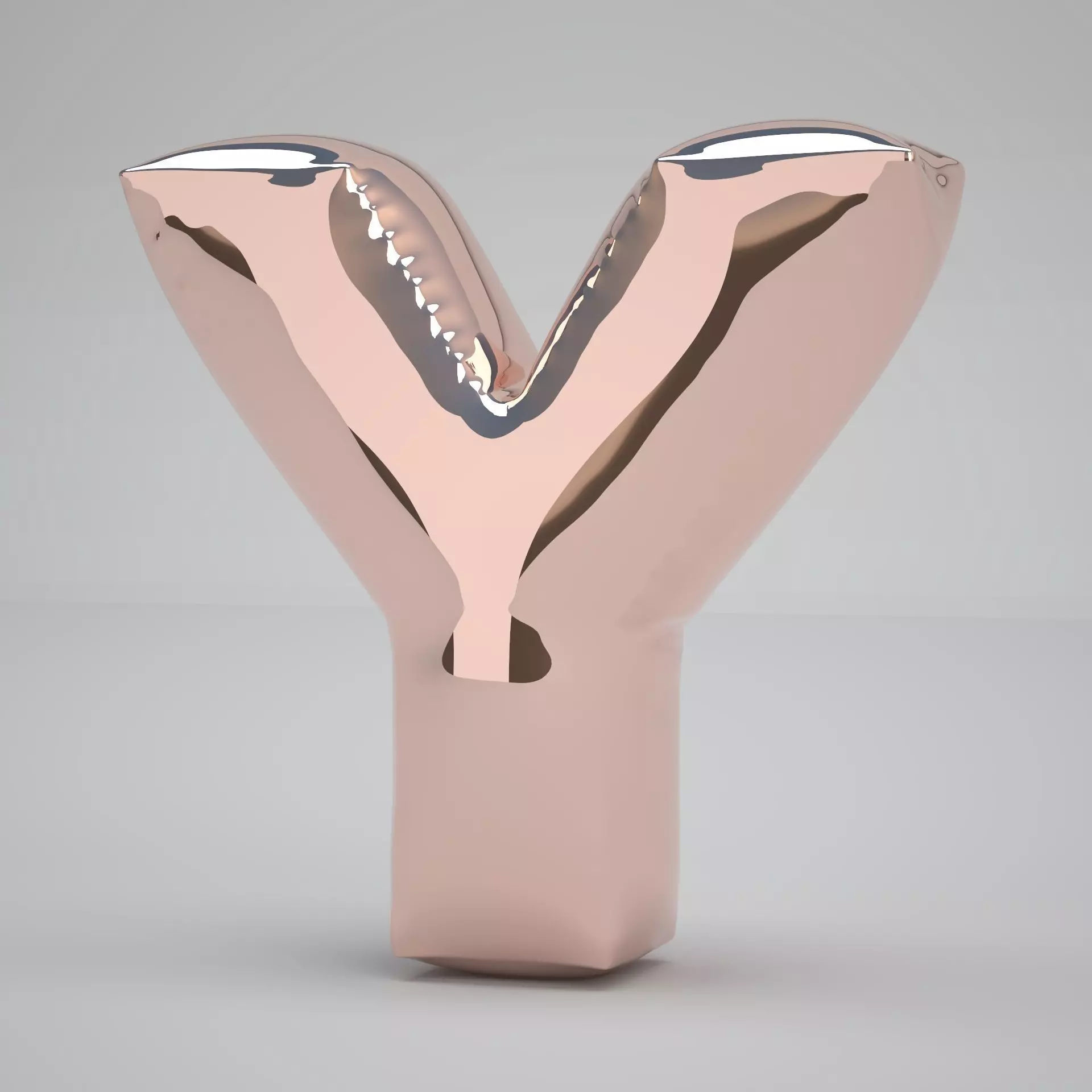 Realistic 3D Model OF Balloon Y Alphabet Copper