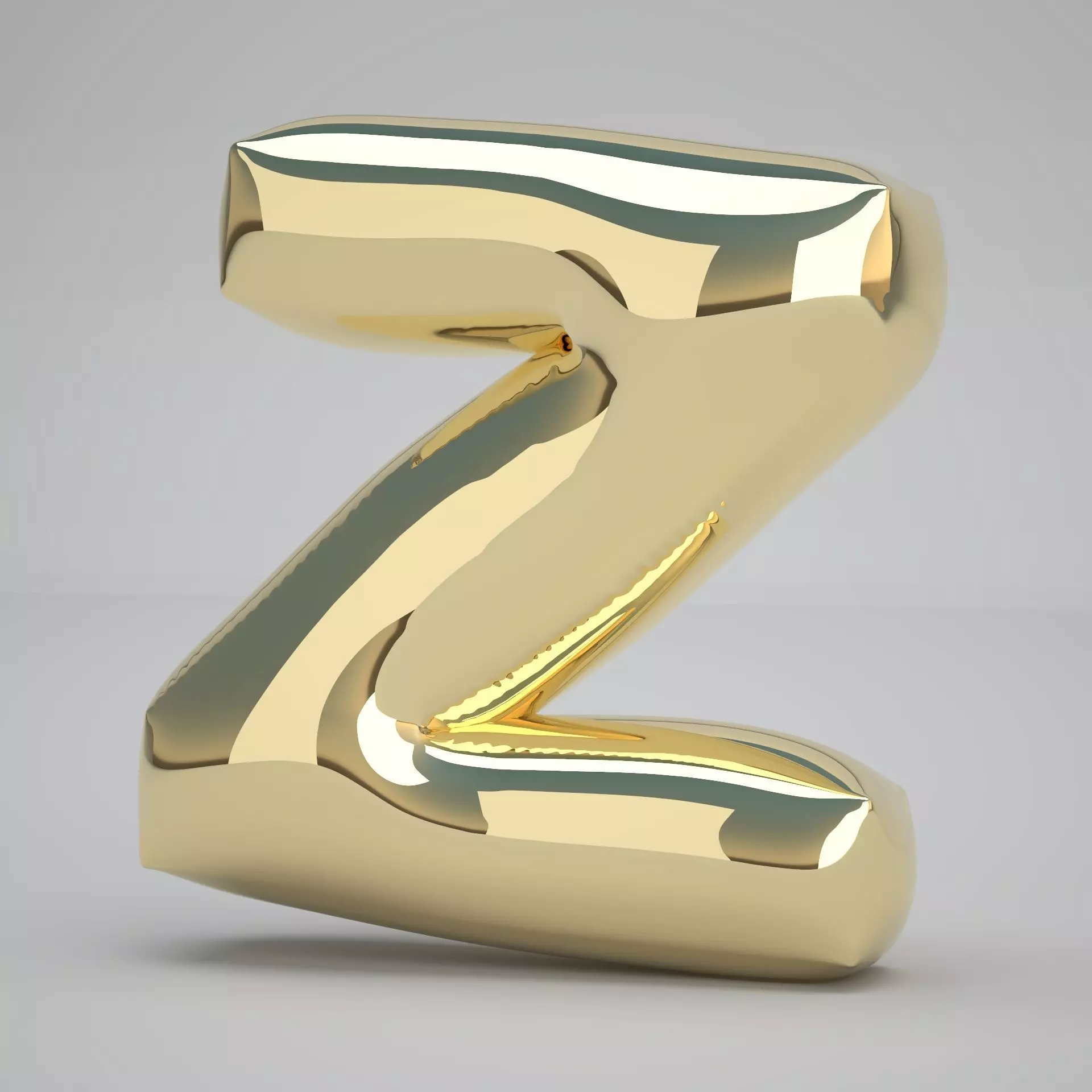 Realistic 3D Model OF Balloon Z Alphabet Gold