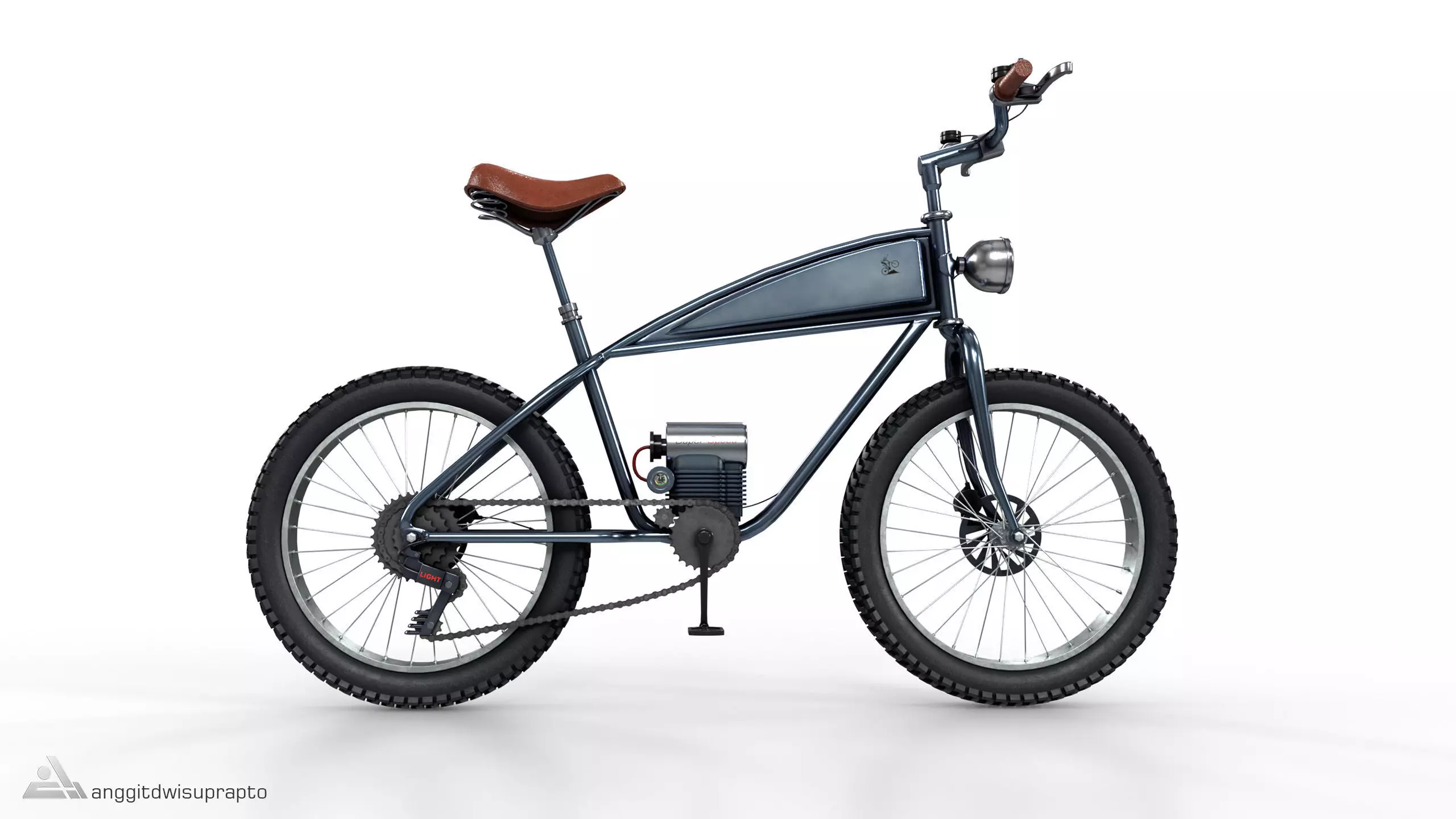Description:An electric mountain bicycle inspired by the historical timeline, showcasing a vintage-inspired design with a modern twist. The frame is a classic steel blue hue, complemented by chrome details and a leather saddle. The fat tires with a retro tread pattern offer stability and control on rough trails, while the compact motor provides a powerful boost for uphill climbs.