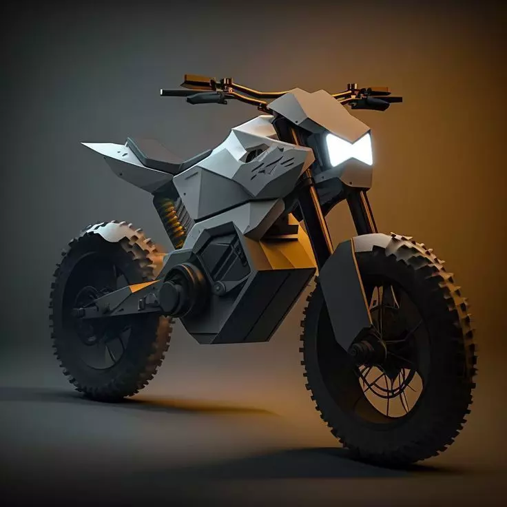 This is not merely a digital model; it is a visionary, hyper-detailed 3D asset that embodies the cutting edge of sustainable, high-performance personal transportation, meticulously crafted to represent a plausible future where advanced engineering, minimalist aesthetics, and rugged capability converge into a single, breathtakingly beautiful machine. The motorcycle is presented against a dark, gradient studio background, which serves to isolate the vehicle and allow its revolutionary form and intricate details to command the viewer's undivided attention, making it an ideal asset for conceptual design presentations, advertising campaigns for technology or automotive brands, and editorial content exploring the future of mobility. Its overall design philosophy is one of aggressive minimalism and functional futurism, characterized by a sleek, sculpted bodywork finished in a pristine, matte white that gleams under the warm, directional studio lighting, contrasted sharply with accents of deep black on the frame, suspension, and massive tires, creating a visually striking and modern aesthetic. The core structure is a highly integrated, monocoque-style chassis, where the main body panels are not merely cosmetic covers but integral structural elements that seamlessly encase the large, rectangular battery pack, which is prominently visible on the side of the bike, hinting at its electric powertrain and serving as a key design feature rather than a hidden component. This integration suggests a focus on weight distribution, aerodynamics, and maximizing range, hallmarks of next-generation electric vehicle design. The motorcycle's most immediately arresting feature is its pair of enormous, knobby tires, wide enough to be classified as fat tires, mounted on multi-spoke alloy wheels with a dark, metallic finish. These tires, with their deep, aggressive tread patterns, unequivocally signal its off-road capabilities, designed to conquer challenging terrains from sandy beaches to rocky trails, while also contributing to its imposing, almost sci-fi presence. The front suspension is dominated by a set of robust, inverted telescopic forks, finished in black, which provide the necessary travel and stability for rough terrain, while the rear suspension appears to be a sophisticated mono-shock system, partially concealed within the sculpted tail section. The handlebars are wide and flat, equipped with ergonomic grips and a compact, minimalist cockpit that likely houses a digital display screen for essential riding information, though the specific details are intentionally kept subtle to maintain the clean lines. The seat is low-slung and narrow, designed for a forward-leaning, athletic riding posture that enhances control and agility. The entire vehicle is positioned at a dynamic three-quarter angle, allowing a comprehensive view of its profile, from the sharp, angular front fender and headlight assembly to the streamlined rear fender and the exposed chain drive mechanism, which adds a touch of raw mechanical honesty to its otherwise highly refined appearance. The lighting is expertly controlled, casting soft, diffused shadows that accentuate the complex curves and hard edges of the bodywork, while producing realistic specular highlights on the glossy white paint and the metallic components, enhancing the perception of its premium materials and flawless manufacturing. This level of photorealistic rendering makes the asset indistinguishable from a real photograph, offering unparalleled versatility for designers, marketers, and concept artists seeking to convey a message of innovation, sustainability, and the thrilling potential of electric-powered adventure. It is a powerful symbol of progress, representing a world where environmental consciousness does not mean sacrificing performance or style, but rather elevating them to new, previously unimagined heights. Whether used in a tech startup's pitch deck, a luxury brand's campaign for eco-conscious consumers, a video game's futuristic setting, or an architectural visualization of a smart city, this motorcycle stands as a testament to human ingenuity and the relentless pursuit of a better, cleaner, and more exciting future. The sheer quality of the rendering, from the subtle reflections in the paint to the precise detailing of the fasteners and hoses, speaks to the immense skill and dedication of the artist who created it, making it a valuable asset for any project that demands the highest standards of visual excellence and technical accuracy. The image evokes a profound sense of anticipation and excitement, inviting viewers to imagine the silent hum of the electric motor, the grip of the tires on uneven ground, and the feeling of freedom as they ride into a future that is both technologically advanced and deeply connected to the natural world. It is a vision of a world where the boundaries between technology and nature blur, creating experiences that are both thrilling and deeply satisfying.