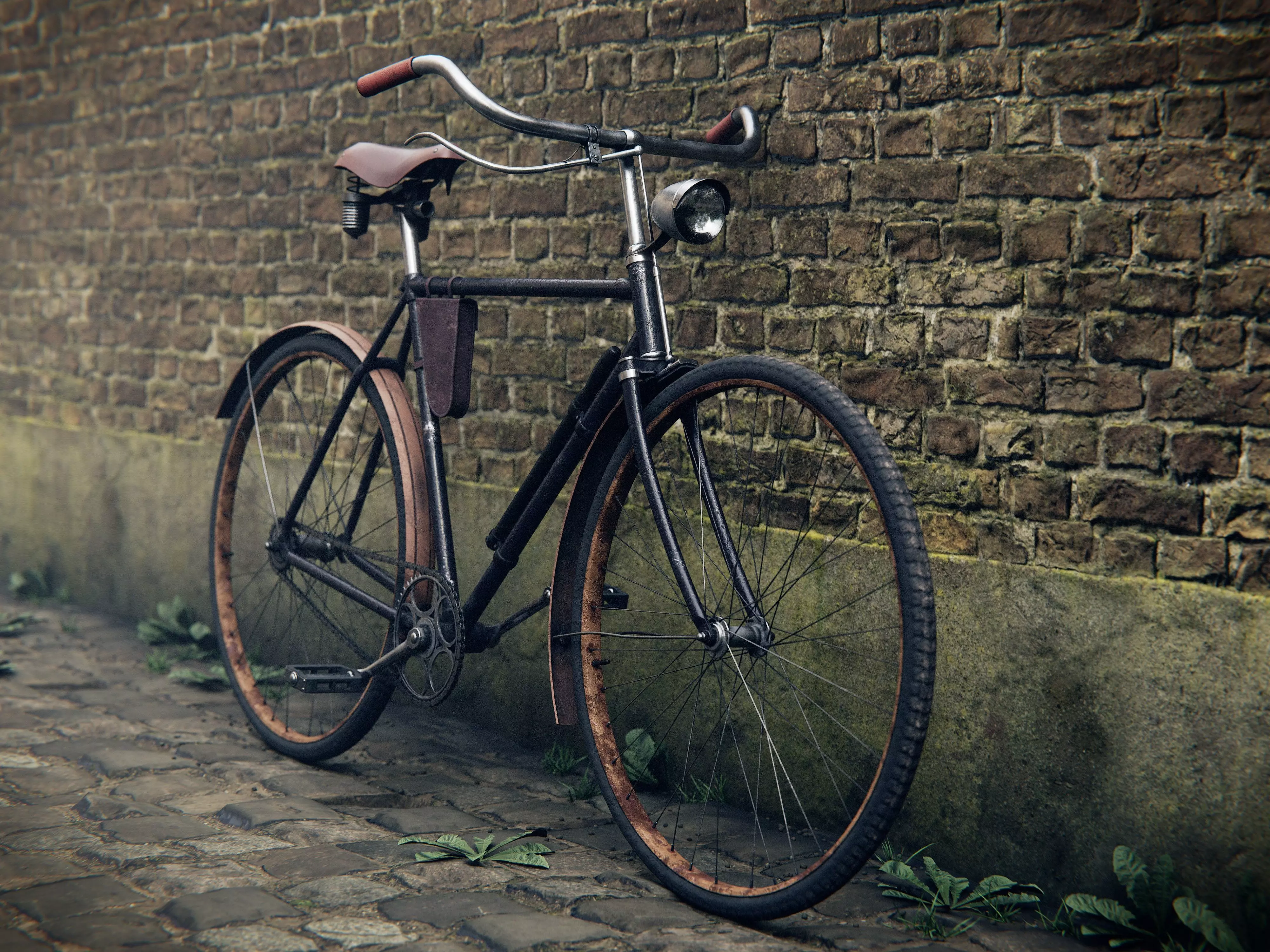 this bicycle was modeled and textured from real life reference, using the subdivision modeling workflow. it has a PBR material with 8K textures. the material includes diffuse, metallic, roughness, transmission, and normal textures. the scene is included for free and has its own material with four 8K textures. the bicycle is rotated by exactly 5 degrees to lean against the wall and can be straightened by rotating it 5 degrees in the other direction. all textures are packed into the .blend files but need to be manually downloaded for use with the .fbx and .obj file with the provided texture download.the model works fine in any blender version above 2.80 (not limited to the versions provided for download), but might not work in a very old version of blender.poly count bicycle: 88151 polygons, 92470 vertspoly count scene: 48827 polygons, 47341 verts