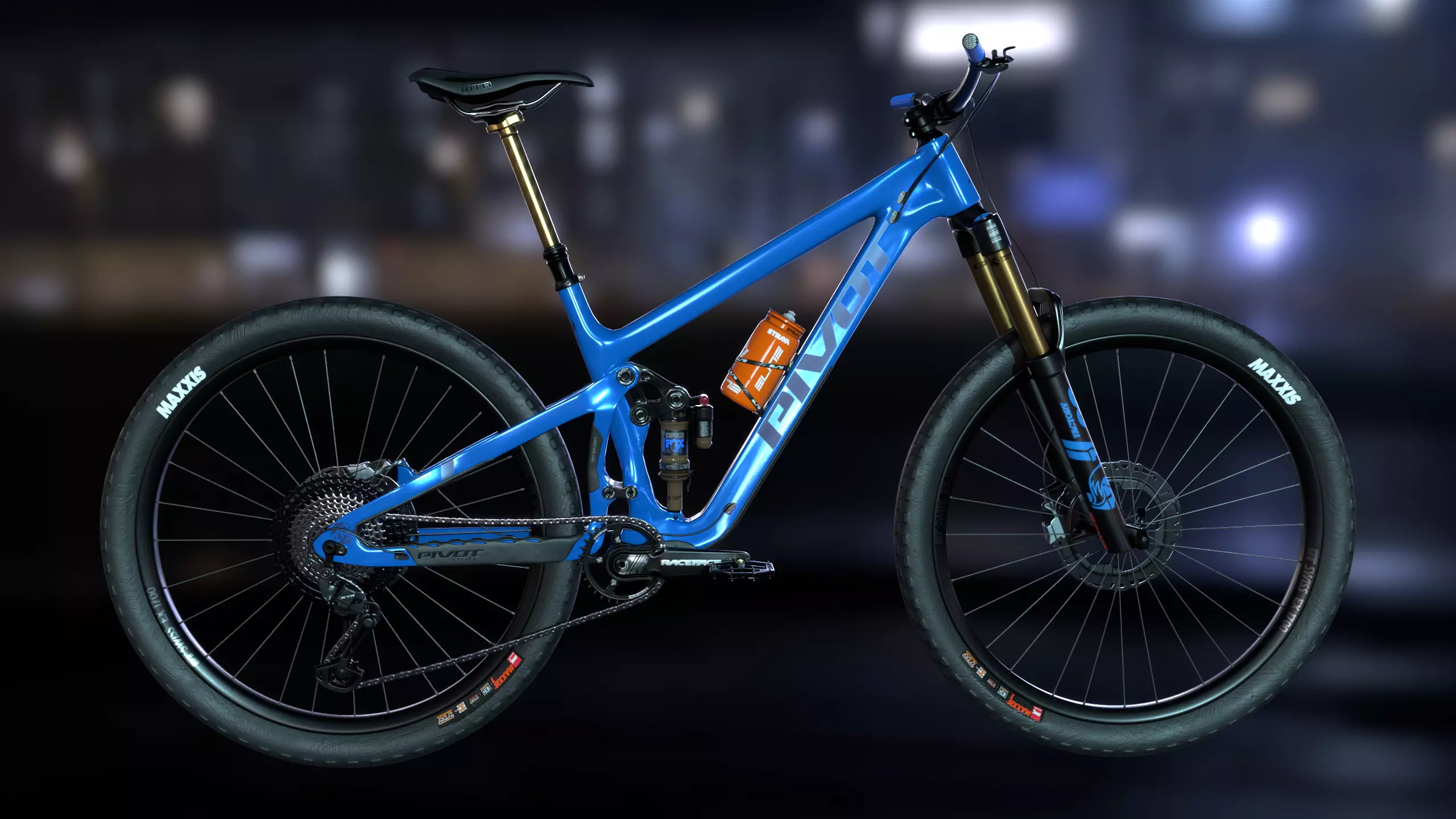 Pivot Switchable ENDURO/MTB bike modeled entirely in Blender. UV in RIZOMUV and textured with Substance Painter and Photoshop. Two materials (=two PBR texture sets) 4k each. PBR textures for cycles, vray and standard PBR included. ‘Low’ poly is 237k polys. Whole bike is consist of 39 different objects accordingly named. Blue version of real bike’s paint is matte but I went for shiny one in this case. There are two other color schames for this bike which I might consider doing later.