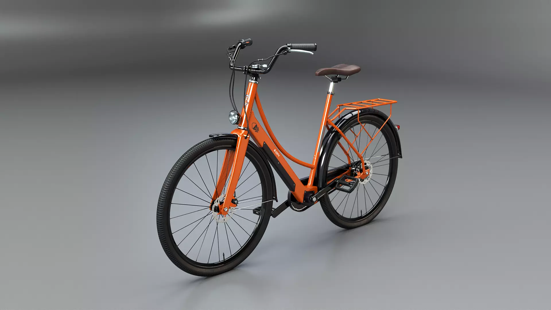 Realistic 3D Model of Orange Dutch City Electric Bicycle PBR 3D model