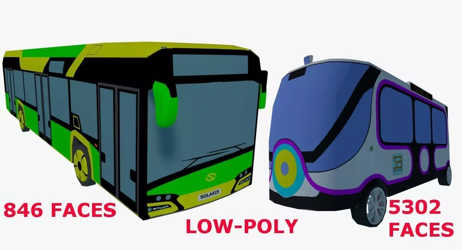 These are low-poly models of bus Solaris Urbino and Smart (driverless) minibus . Both models include only exterior and are not suitable for subdivision. Easy to use with only 1 material per each model.