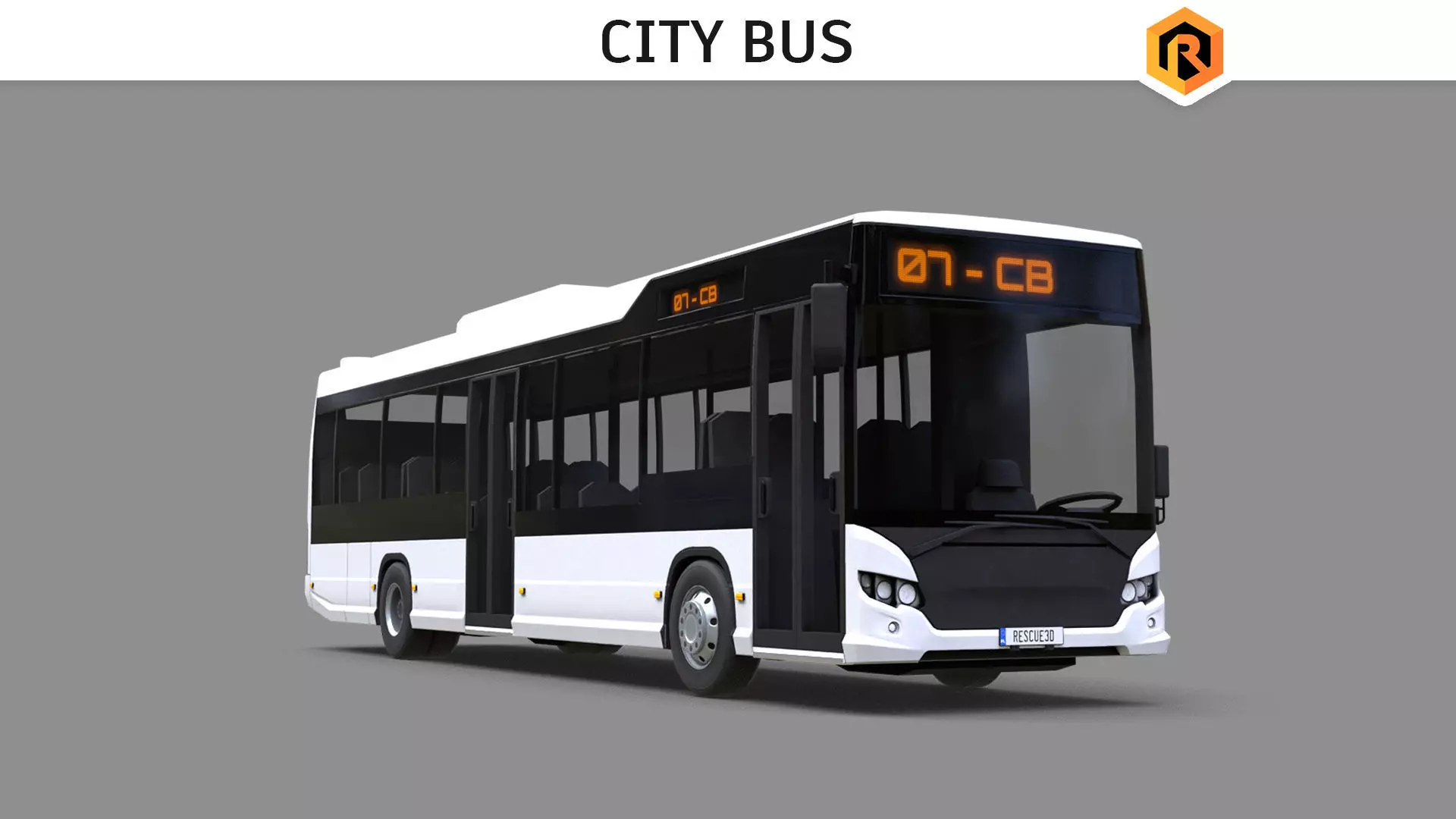 High-quality low-poly PBR 3D model of City Bus. The interior part is also modeled and textured but with much less detail.