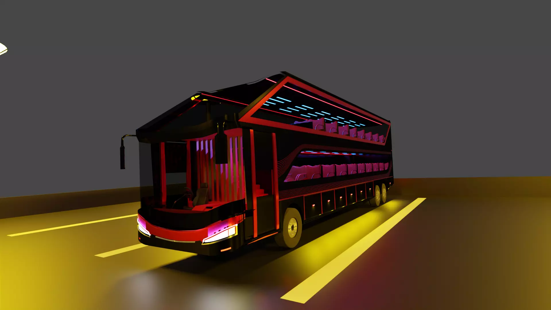 Fully modeled exterior with modern aerodynamic stylingDetailed double-deck passenger seating layoutInterior staircase and driver cabinNeon LED-style interior lighting designClean topology and organized mesh structureRealistic proportionsHigh-quality renders ready