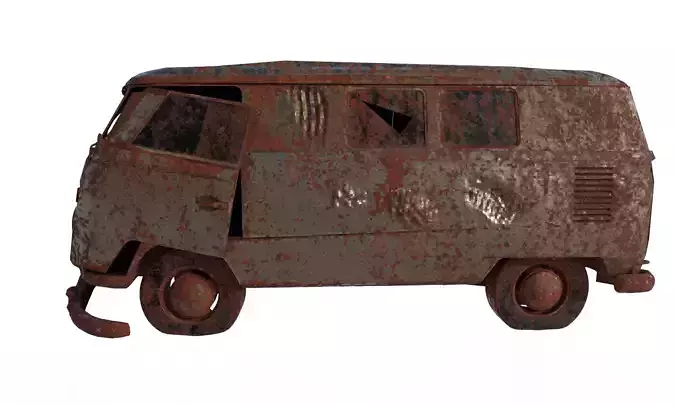 -This wrecked Volkswagen Bus model is perfect for your 3d renders and game engines -Textures include 2k and 4k textures.-All textures are zipped into a .rar file -Includes Base colour, Metallic, Roughness, Ambient Occlusion and Normal maps-Vertices 37,246- Polygons- 24,610-Model was created in blender 2.9 .stl, .mtl, .obj, .fbx, files are included as well. -Contact me if you need modifications, thanks :)