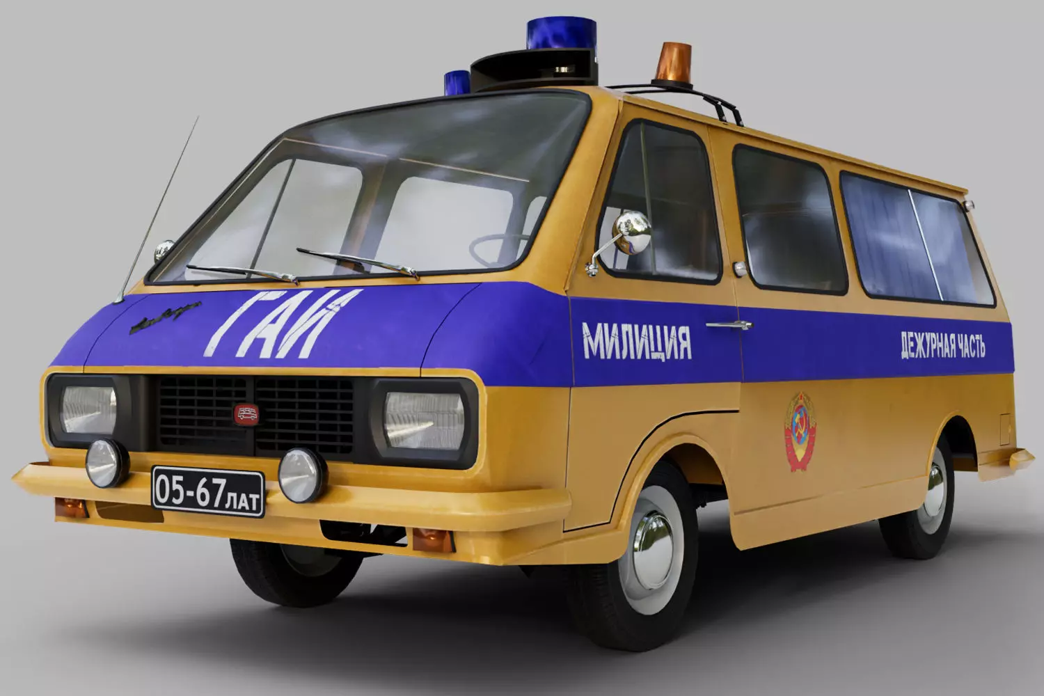 The RAF-2203 Latvia was arguably the most widely produced and recognizable minibus on the roads of the Soviet Union. It is a truly iconic vehicle, symbolizing an entire era in Soviet history! It became an integral part of the Soviet urban landscape, serving a wide variety of functions, from shuttle buses to official transport. Produced at the Riga Automobile Factory, the RAF-2203 became a symbol of an era, leaving a lasting mark on the history of Soviet automobile manufacturing. Its reliability, ease of maintenance, and versatility made it an indispensable assistant for a wide range of transportation needs. Even today, decades later, you can still find restored RAF-2203s, carefully preserved by vintage car enthusiasts, testifying to its enduring value and recognition.The low-poly 3D model was created in Blender, with Cycles being the optimal renderer. It's detailed enough for close-up visualization. Detailed textures are included.The model is divided into individual parts—the body, doors, wheels, and steering wheel. In the blender file, the parts are linked to dummy parts, which are used to perform the rigging—the rotation and turning of the wheels and steering wheel, and the opening of the doors.