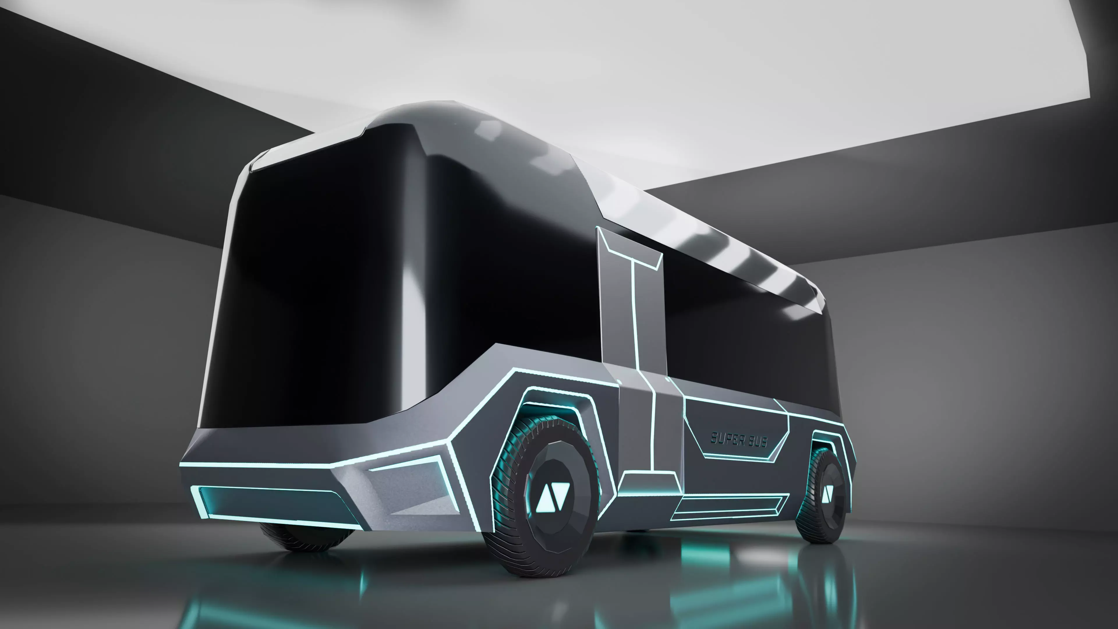 A high-quality, concept-driven Sci-Fi Super Bus designed for futuristic urban environments, cinematic renders, and sci-fi world-building. This model features a sleek, heavy-duty silhouette with integrated neon lighting and a modern autonomous shuttle aesthetic. The Super Bus branding and unique AV hubcap logos add a level of professional detail that makes it ready for immediate use in any high-tech city scene.