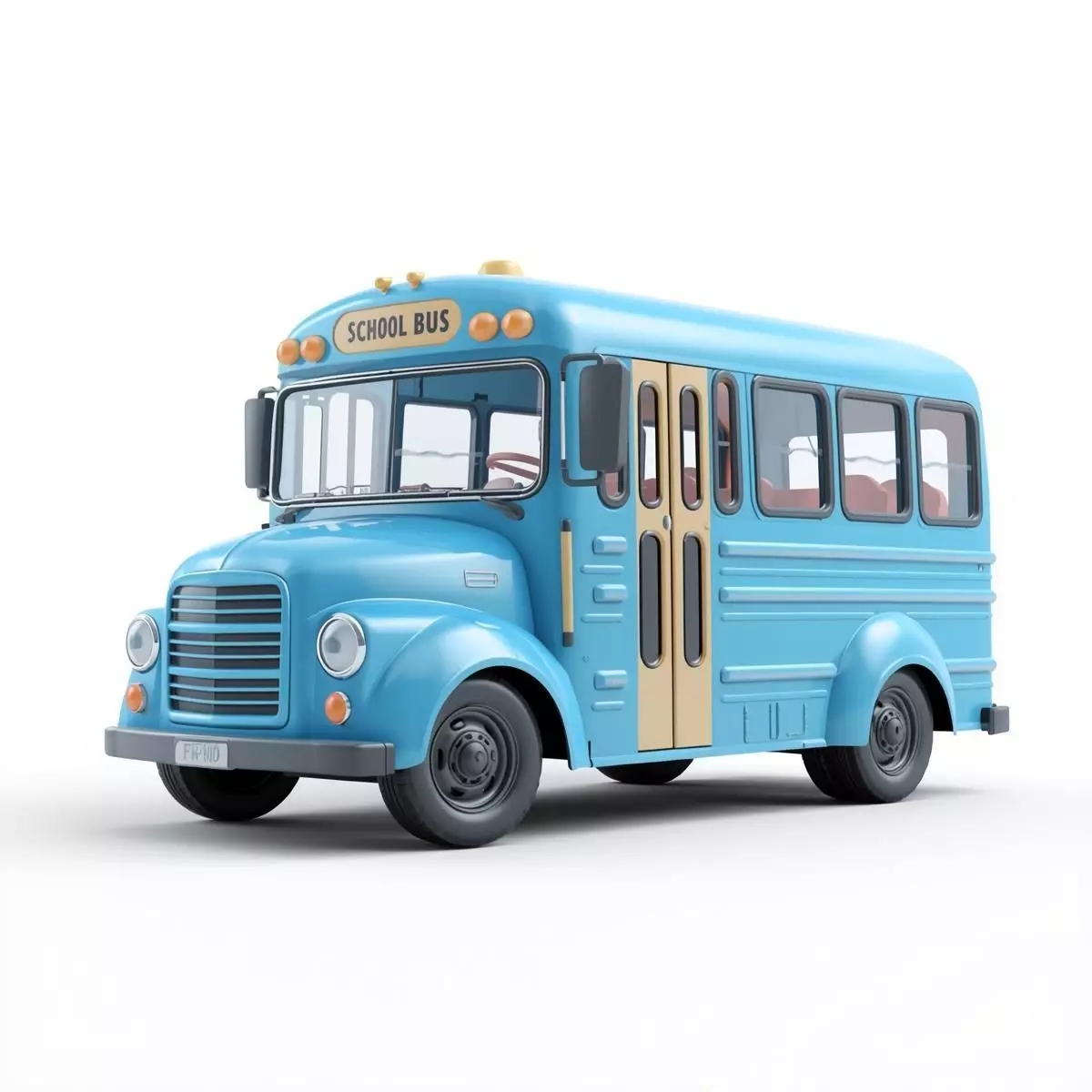SchoolbusBusBlueCartoonStylizedKidsEducationVehicleTransportRetroClassicChildrenPlayfulAnimationGameToyMascotLearningIconicRender