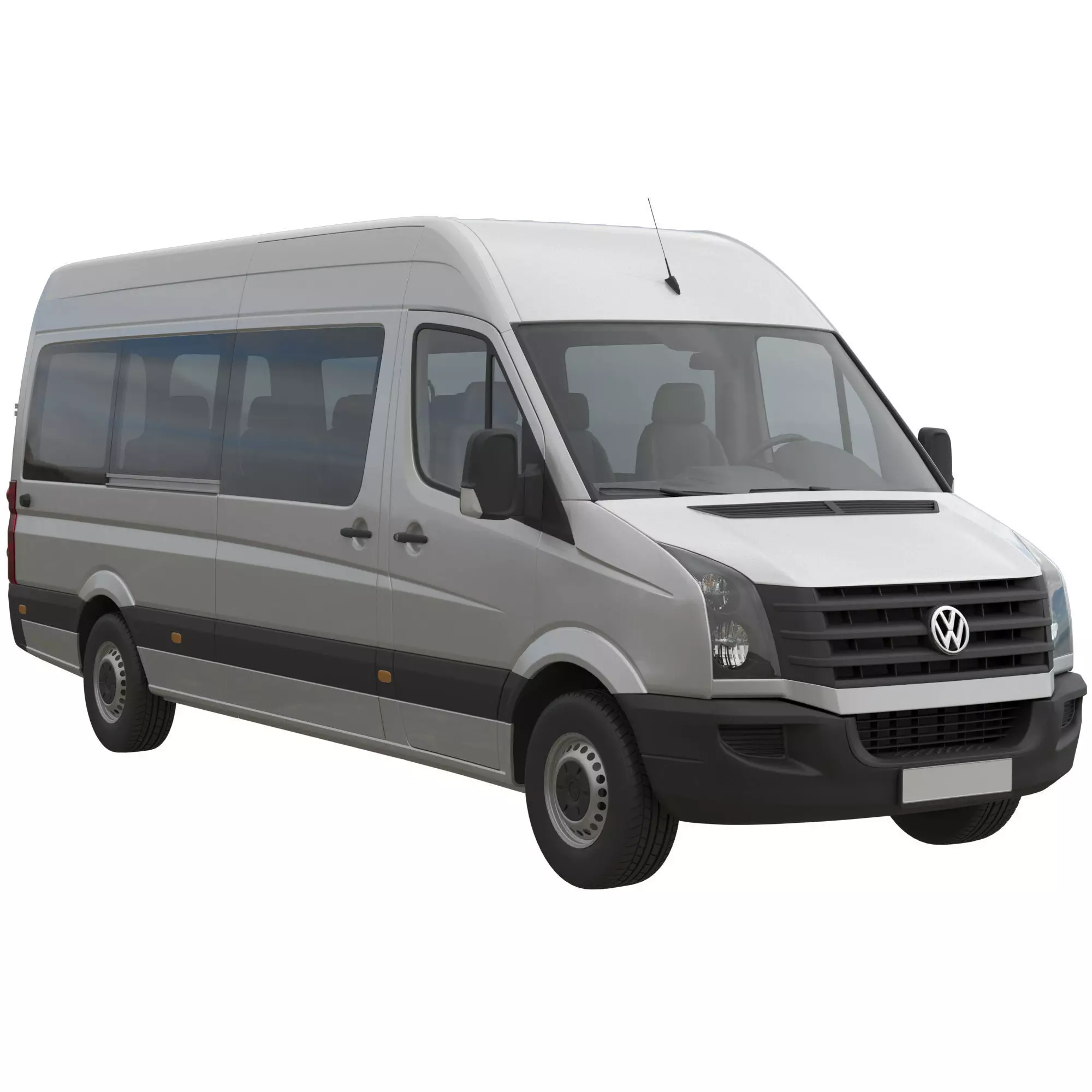 Volkswagen Crafter of the first generation, restyling 2011 (2006-2018). Minibus.4 vehicle lengths: compact, standard, long and extra long 3 roof heights: standard, high and extra high with standard roof.Available in rear and all-wheel drive options.