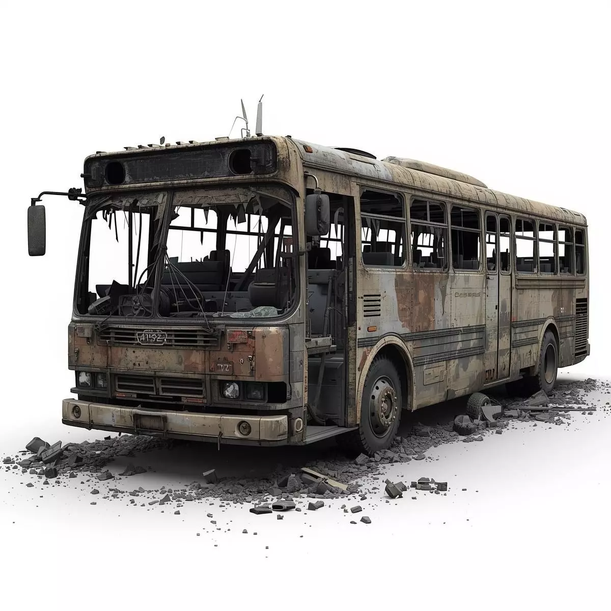 Tags bus, transport, city-bus, wrecked, vehicle, abandoned, ruined, destroyed, apocalypse, war, rust, transit, debris, rubble, realistic, wasteland, environment, post-apocalypse, pbr