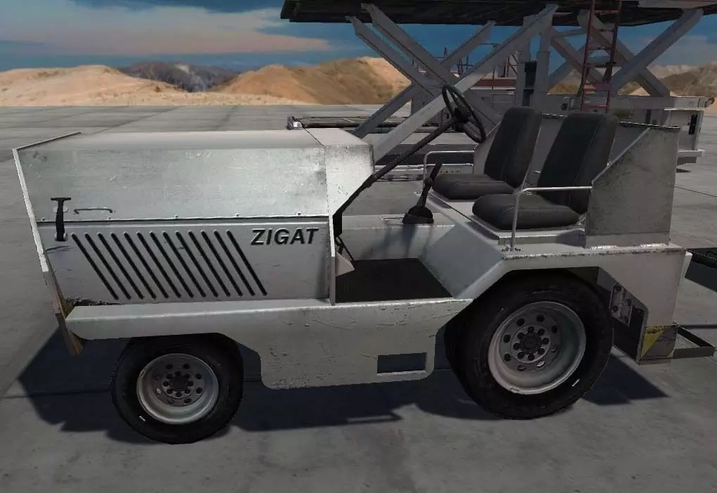 Airport Baggage Tractor comes with different levels of LOD. Baggage Cart comes in 2 versions, one with the curtain open, and the other one closed.