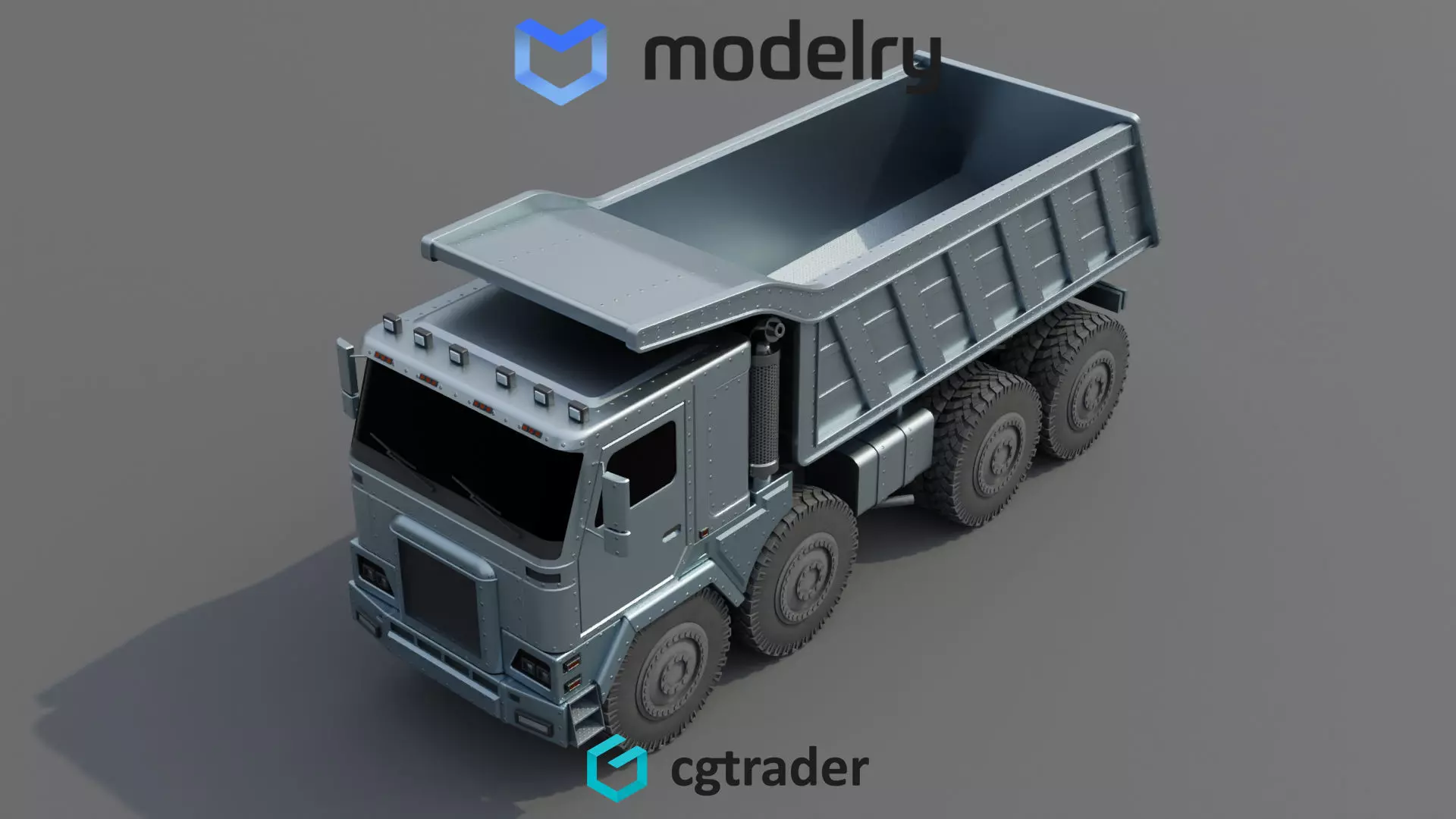 An industrial-grade dump truck built for heavy-duty construction work, boasting a sleek silver exterior finish, oversized wheels for off-road capabilities, and a powerful hydraulic system for efficient material dumping on the current timeline.