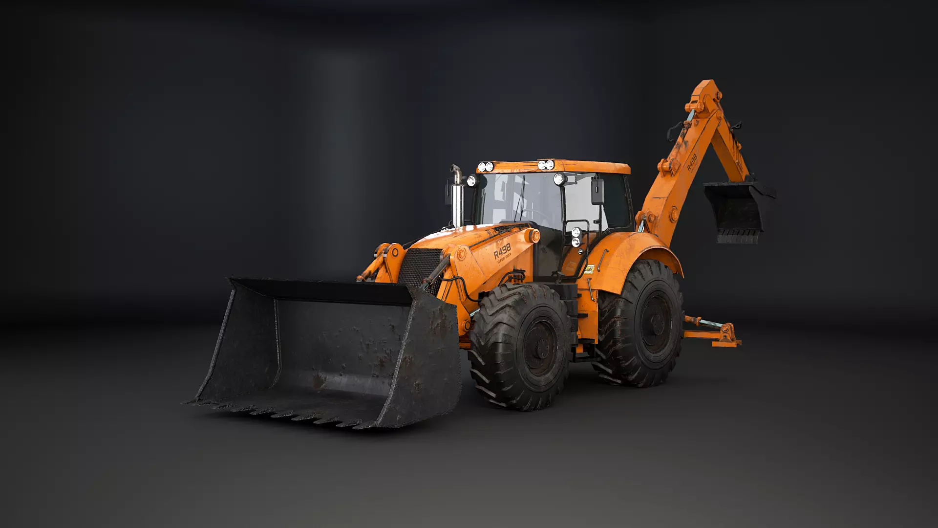 Generic Large Backhoe Loader Used Low-poly 3D model