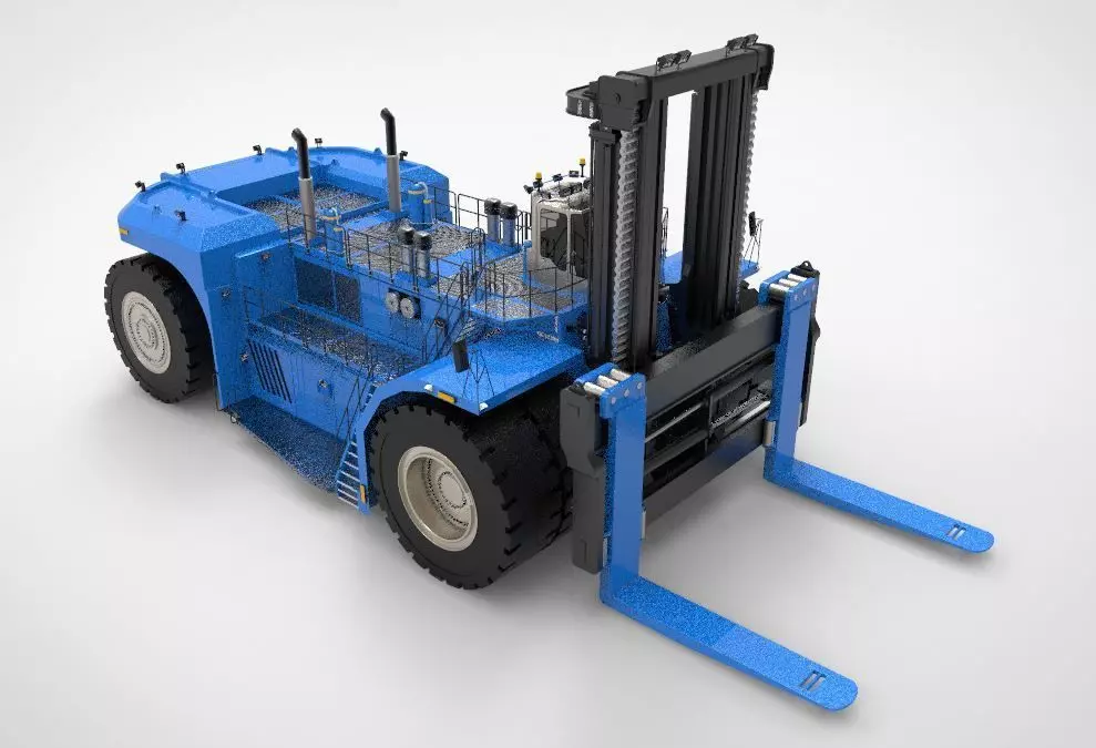 A 3D model of an industrial heavy forklift is a crucial asset for industries such as warehousing, logistics, and manufacturing, offering a detailed and realistic representation of this essential material-handling equipment. The model intricately showcases the forklift's robust frame, powerful lifting mast, forks, hydraulic system, and operator's cabin, enabling engineers and designers to visualize and optimize its design for enhanced performance and safety. Utilizing this 3D model, companies can simulate the forklift's maneuverability, load capacities, and operational efficiency within various industrial settings. This facilitates effective planning of material flow, operator training, and maintenance procedures, ensuring that the forklift is well-suited for handling heavy loads with precision and reliability, ultimately contributing to improved productivity and safety in demanding industrial environments.