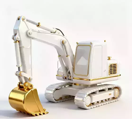 Solid Gold Bucket & HydraulicsTo emphasize its elite status, the model features a massive, polished gold digging bucket and matching gold hydraulic pistons. These metallic highlights provide a breathtaking contrast to the white body and signal that this machine is built for the most exclusive construction projects.