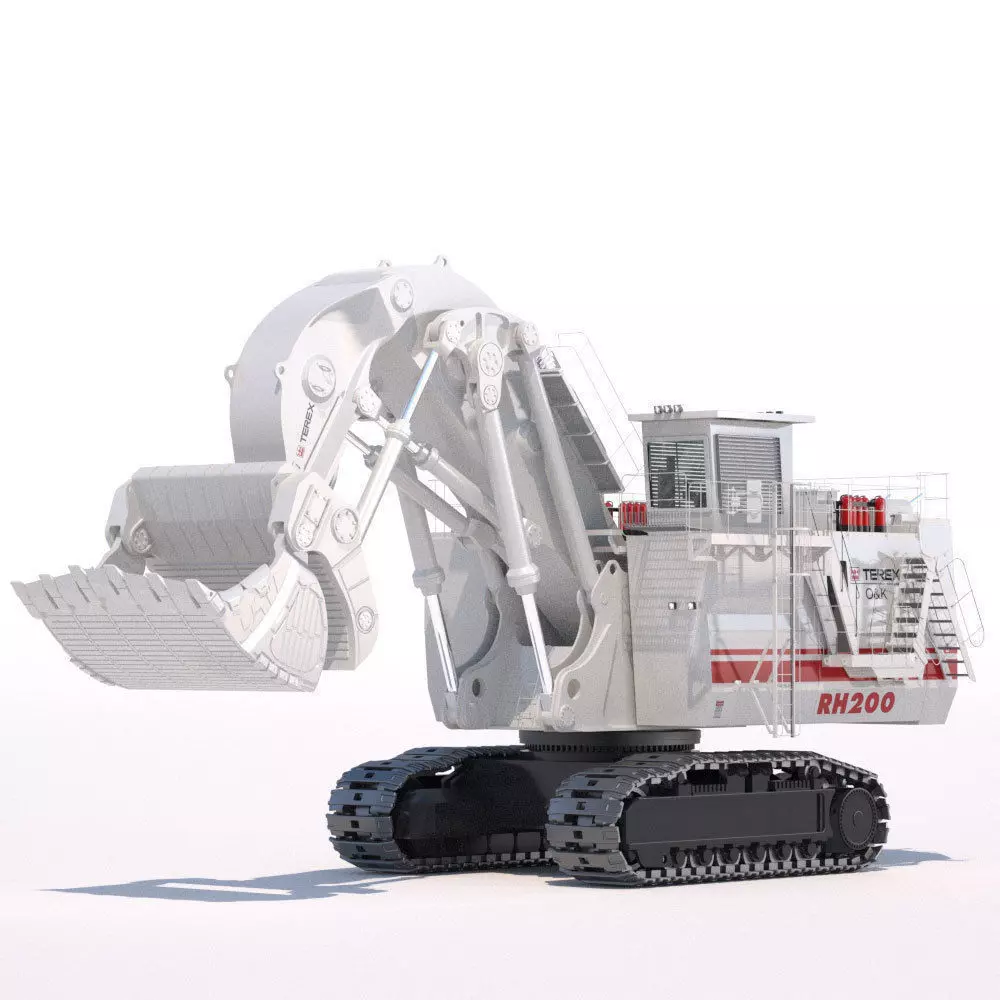High resolution and fully detailed Mining Excavator Terex RH200 FS. Modeled correctly scaled from blueprints, enough detail for close-up renders.Semi-detailed interior.All the materials can be easily modified and have been named with a logical criteria.Closed model, no holes or lost polygons. Crystals have been modeled with volume to use with renderers like Fryrender or Maxwell.Fully UV mapped in every format.Animatable elements.9 materials.Texture map 2048 x 2048 px