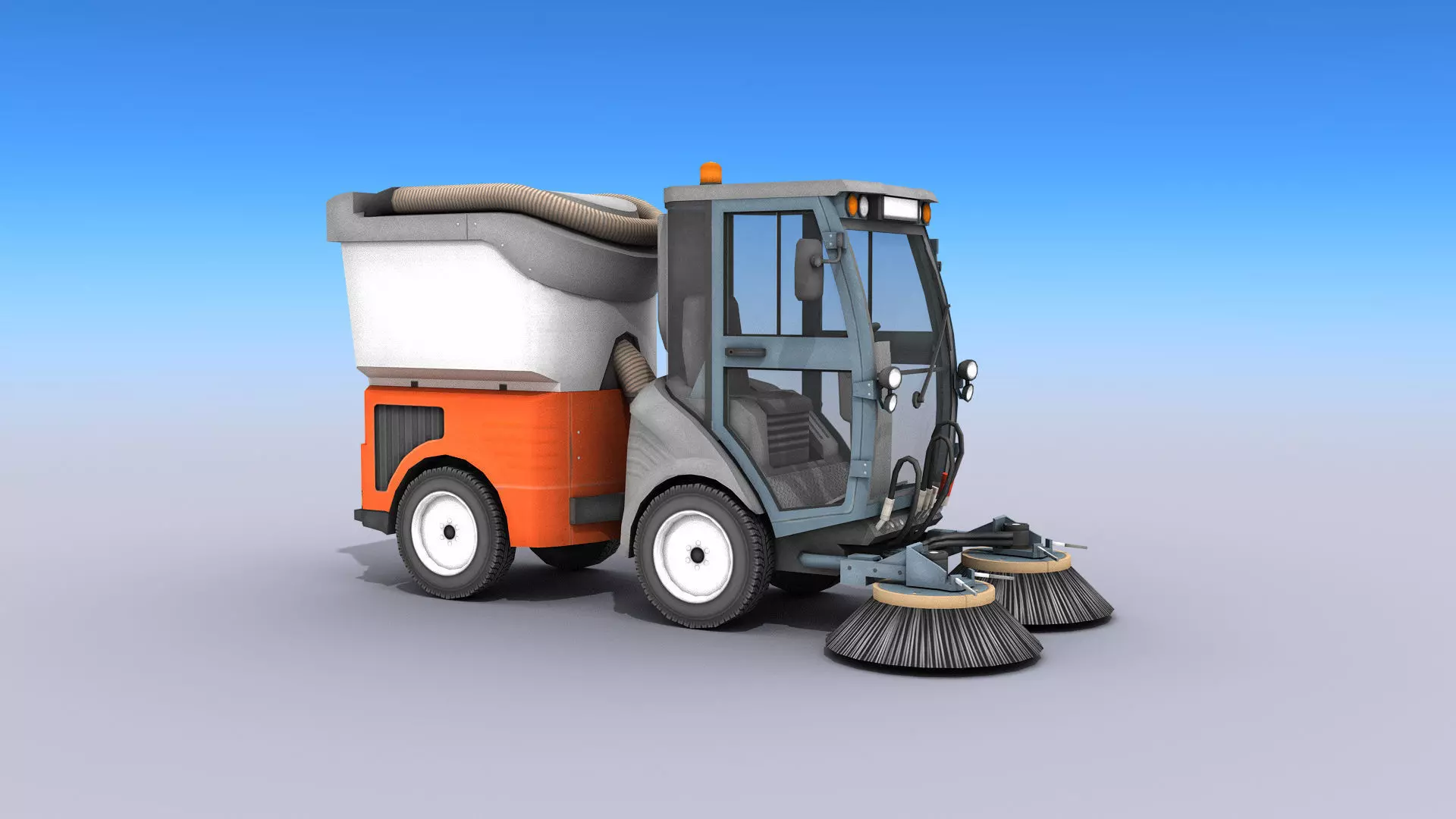 High-quality low-poly 3D model of Street Sweeper vehicle.