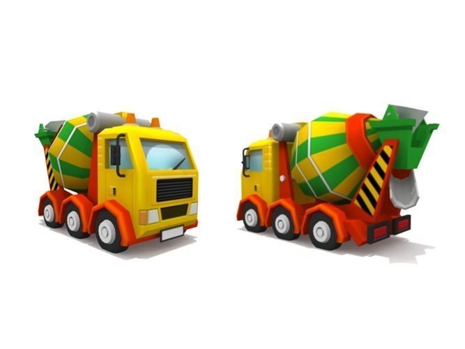 Stylised lowpoly cement mixing truck Low-poly 3D model