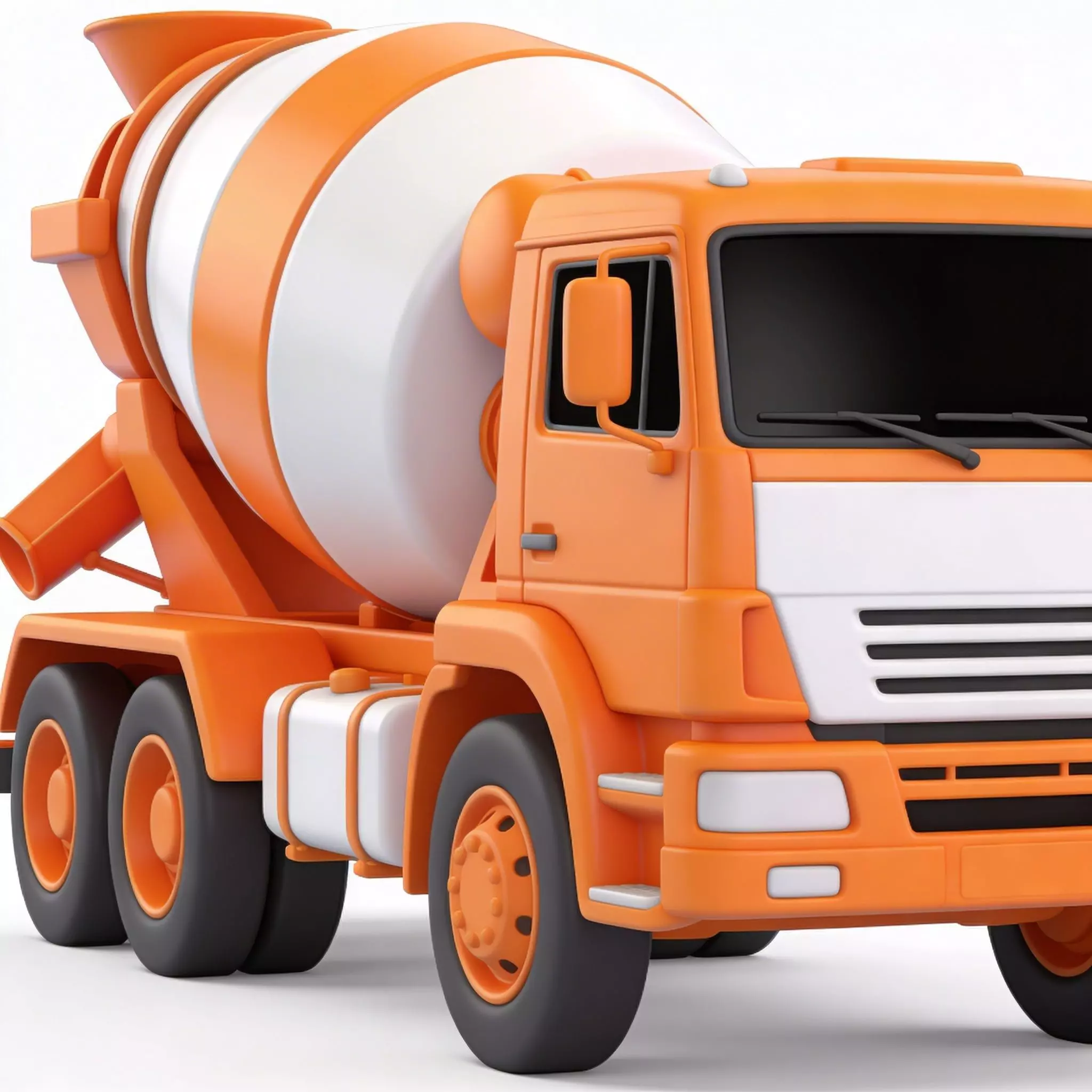 Integrated Rotating Mixing DrumA primary feature of this model is the oversized, rear-mounted mixing drum finished in a clean white and orange spiral pattern. Following a specialized design language, the drum and its thick support assembly are modeled as solid, opaque geometric volumes with smooth edges, strictly avoiding any complex mechanical rigging to ensure the asset is highly optimized for real-time performance.