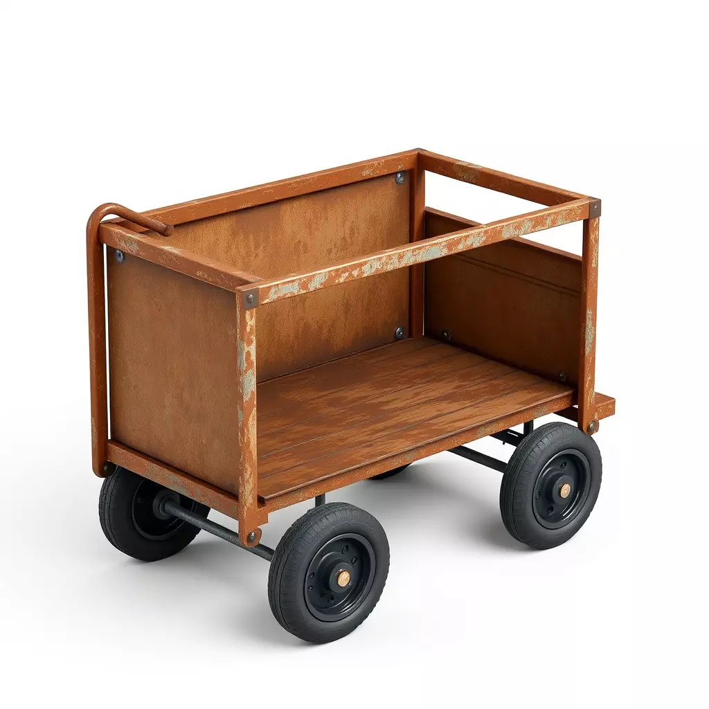 This is a highly detailed 3D model of a vintage industrial utility cart, meticulously textured to depict a heavily weathered and rusted appearance with peeling paint and aged wooden planks. The model features a sturdy metal frame with a distressed wooden bed, embodying the rugged character of an item that has seen extensive use over time. It is an ideal asset for a wide range of digital projects, including realistic game environments, particularly for post-apocalyptic, industrial, urban decay, or historical settings. Furthermore, it serves as an excellent prop for architectural visualization scenes, such as old factories, warehouses, or derelict spaces, enhancing the realism and atmosphere. The model is also perfectly suited for use in AR/VR experiences, digital art, and cinematic renders, where intricate details are paramount. Optimized for real-time applications, it features efficient mesh topology that ensures smooth performance while maintaining visual fidelity. The asset comes with clean geometry, is fully UV unwrapped, and includes PBR (Physically Based Rendering) textures, guaranteeing realistic material representation under diverse lighting conditions. Supported file formats include GLB, FBX, OBJ, USD, DAE, and ABC, providing broad compatibility across various 3D software and game engines. This ensures seamless integration into your preferred workflow, making it a versatile and valuable addition to any asset library.