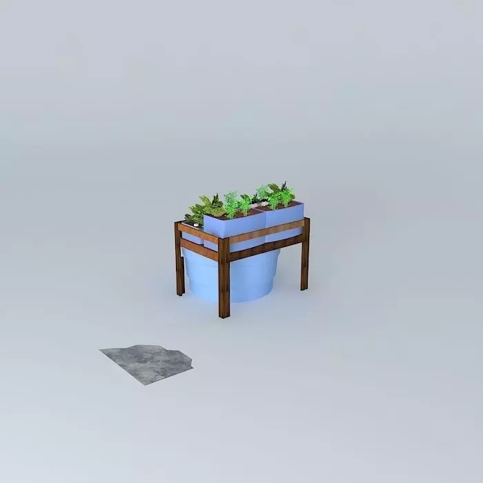 This 3D model was originally created with Sketchup 13 and then converted to all other 3D formats. Native format is .skp 3dsmax scene is 3ds Max 2016 version, rendered with Vray 3.00 System 1 consists of reservoir 500 for fish l, 2 drums 50 l, 2 bombona halves 50 liters with a 2000 l / h pump. This is a basic system, a system really for beginners. One can add filter solids, biological filter, but in the beginning is not really necessary. The design of the tank is 500 l, but can be easily replaced by a 250 l in which one could easily reach 10 kg fish. Biological filtration to give the substrate cultivation beds, and filtering the solids well. With time the solids will accumulate in substrate cultivation beds, but can be removed only with a washing of this substrate. The ratio of the material and the necessary parts can be found at the link below.