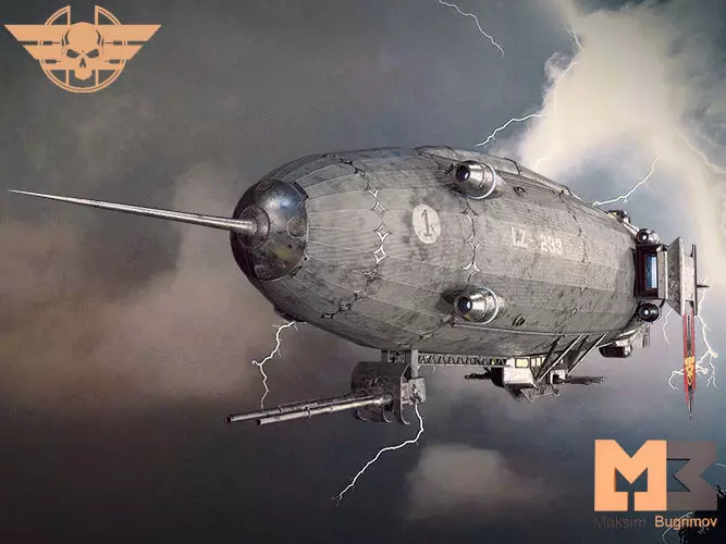 • The Dystopia Airship is equipped with weapons, a fabric physics banner, and lighting.