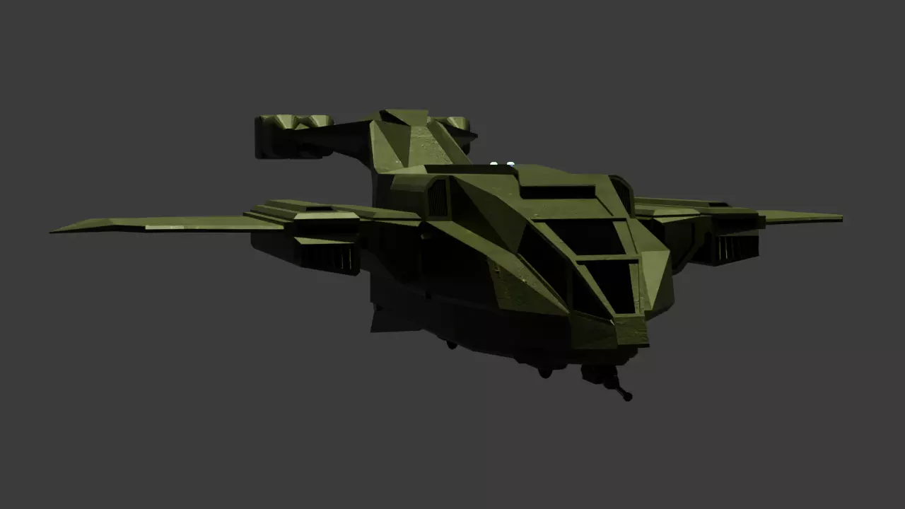 This is a medium-detail 3D model of the Pelican dropship, inspired by the Halo universe. Perfect for games, animations, sci-fi renders, and concept art projects.