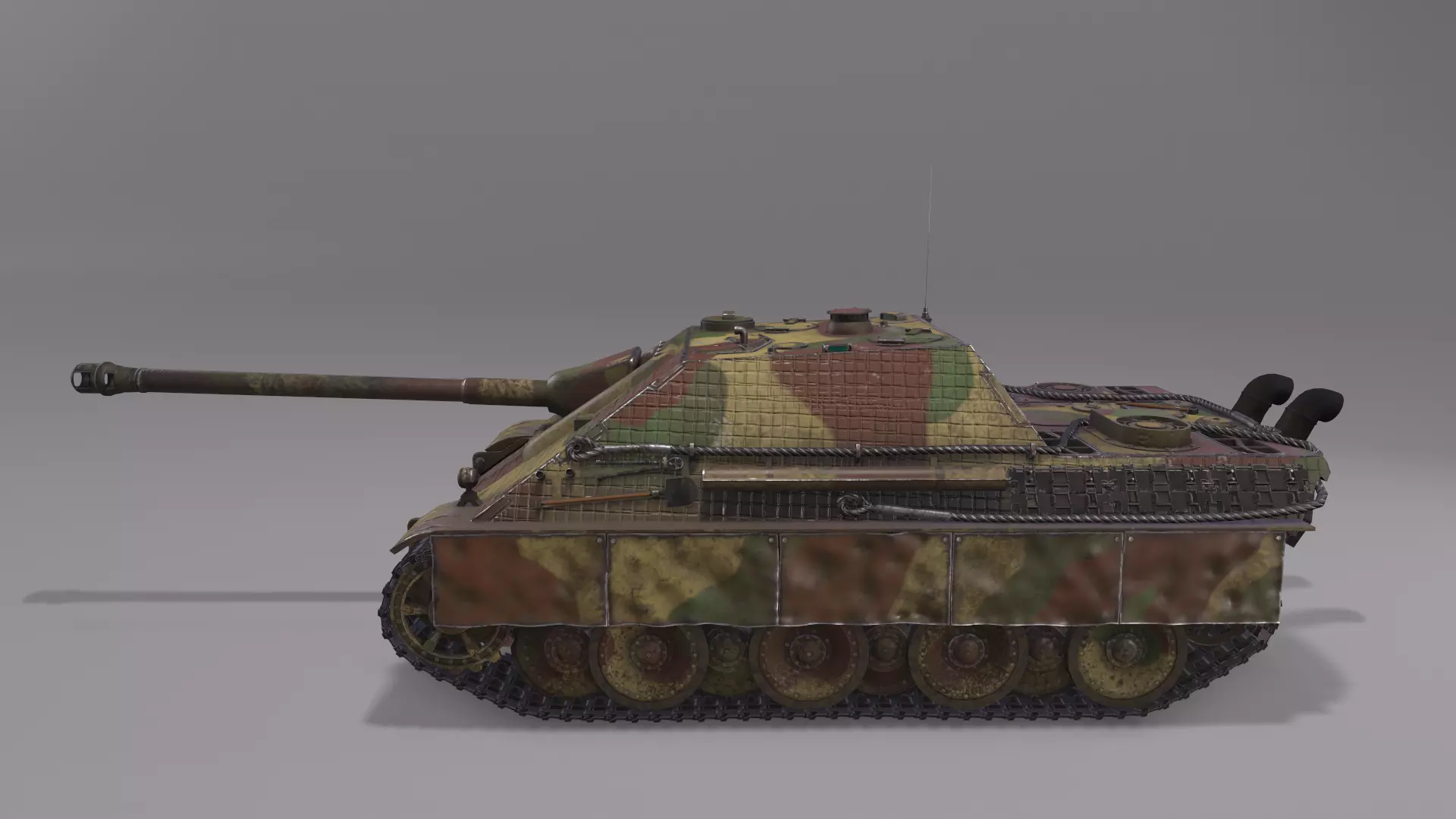 The Jagdpanther, Panzerjaeger Panther (8.8cm) Ausf.G1 is a German tank destroyer that was proposed in late 1942, as a tank destroyer from the Panther chassis that could mount the formidable 8.8 cm Pak43 with good armour and speed. The tank destroyer was created and designated as Sd.Kfz. 173. Production then started in January 1944 under the simpler name of Jagdpanther.