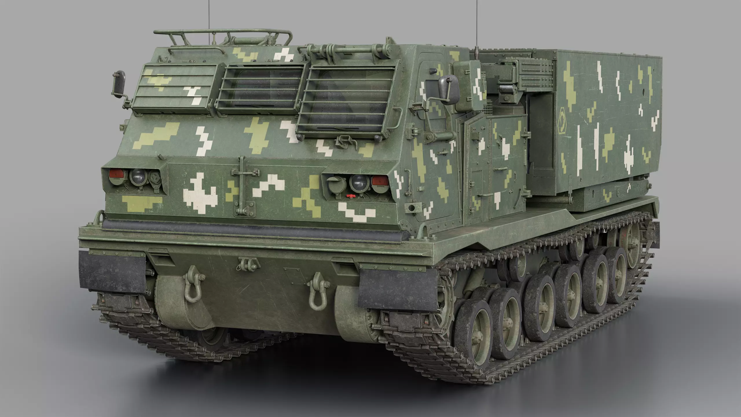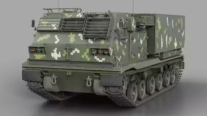 High-quality low-poly 3D model of the MLRS M270 rocket launcher system, created in Cinema 4D. The textures were created in Substance Painter using the Metal/Roughness workflow.