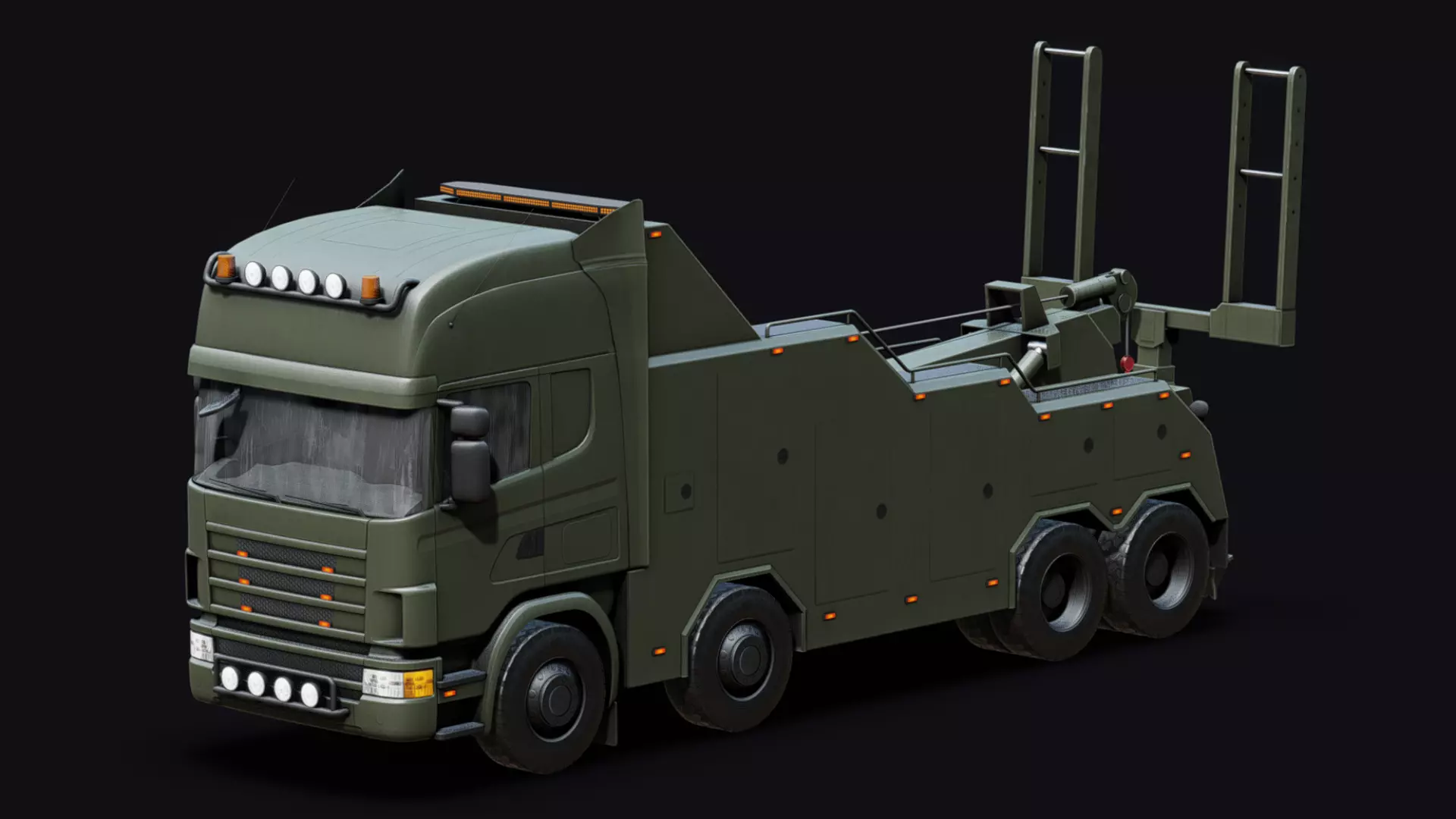 Moving parts like wheels, rotating orange lights, towing/vehicle lifting parts in the rear. Plus the cabin interior, transparent glass parts and steering wheel are separate objects. 36 objects in total.