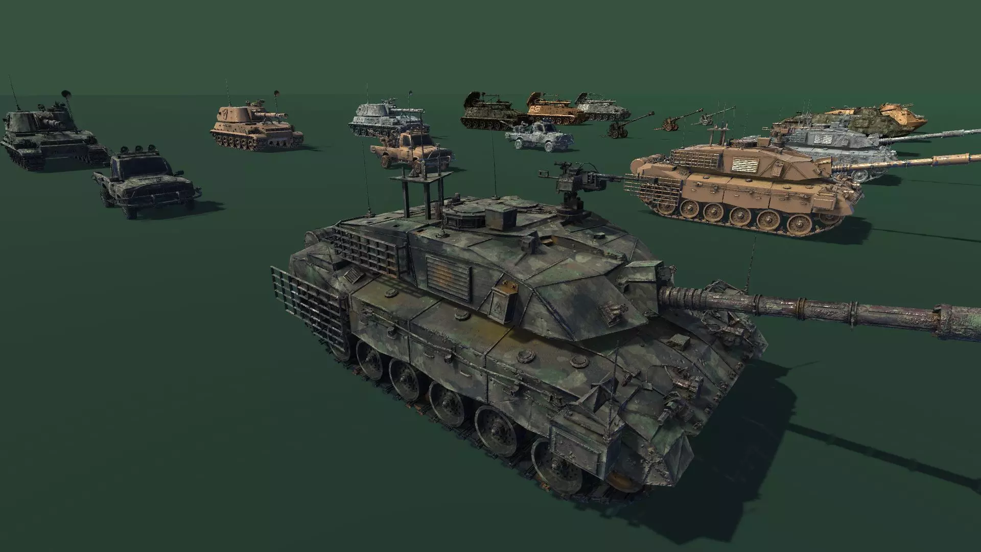 Asset contains: - tank, APC, artillery mount, self-propelled mortar, SUV and howitzer - each has three lods - each has three coloring - LOD0 - 2k texture, LOD1 - 1k, LOD2 - 512