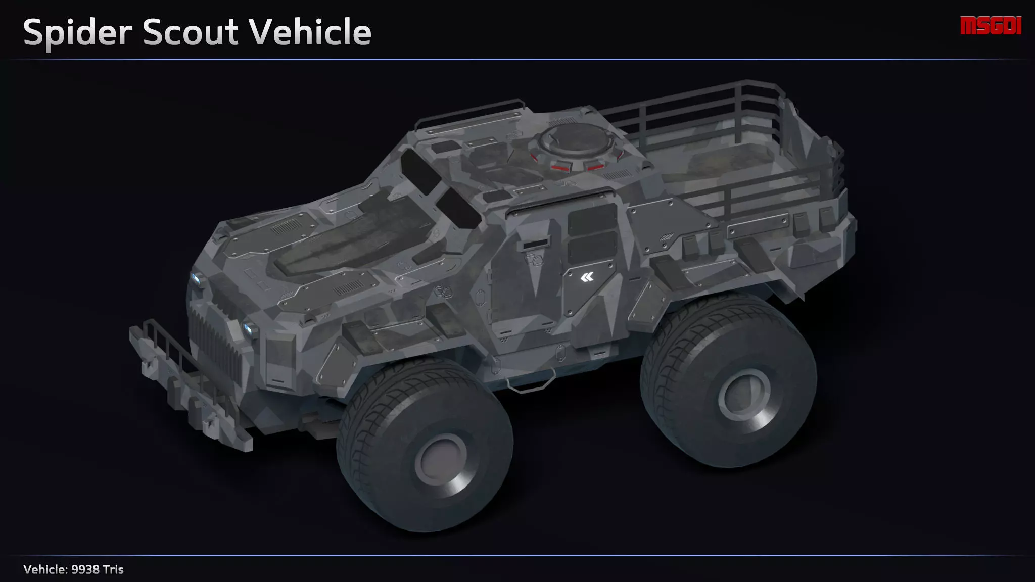 This pack contains a Spider Scout Vehicle. It can be used in RTS or tank games.